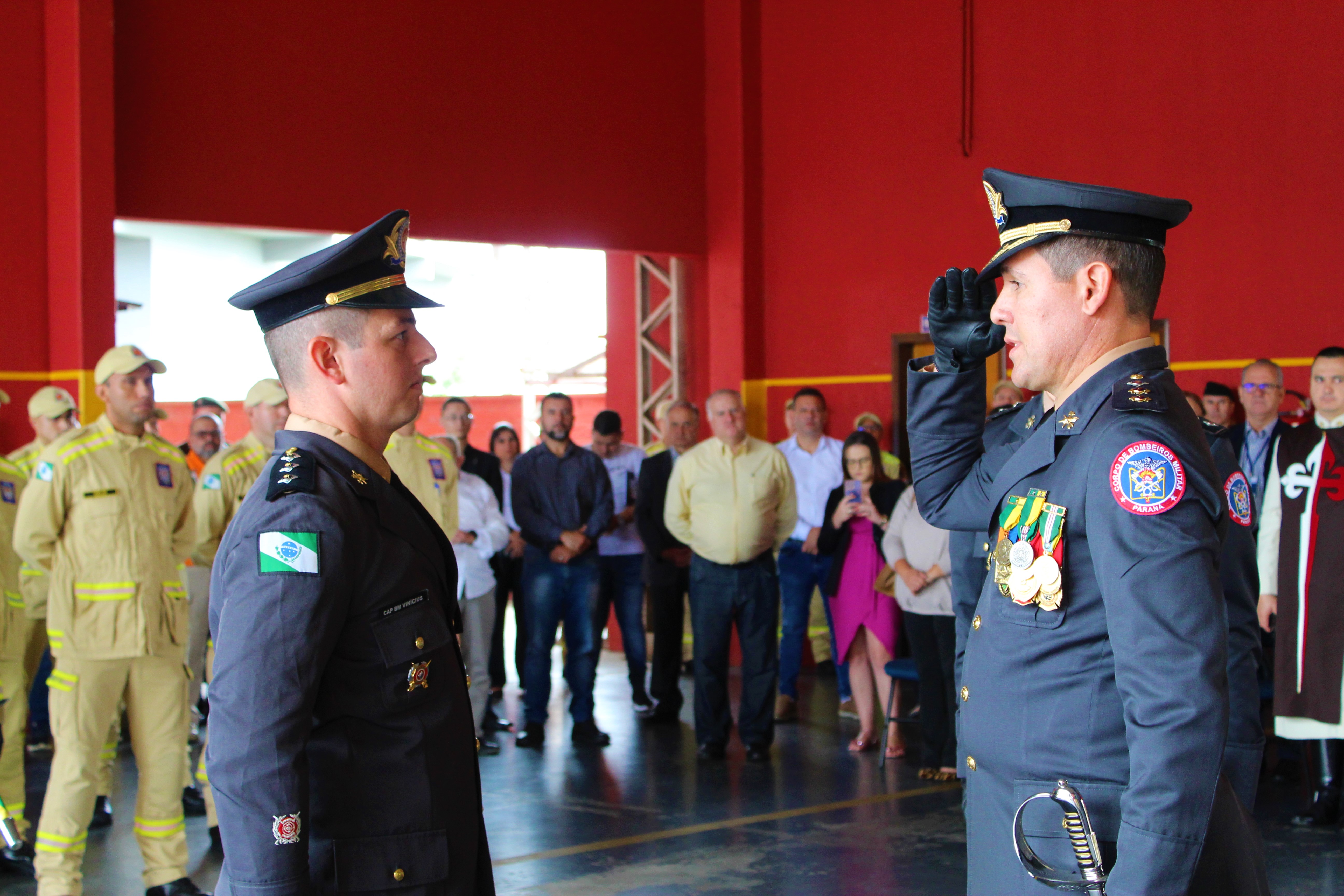 A solenidade contou com a presença de autoridades como o Exmo. Sr. Subcmt.-Geral do Corpo de Bombeiros Militar do Estado do Paraná, Cel. BM Gelson Marcelo Jahnke, do Diretor de Pessoal do CBMPR Exmo Sr. Cel. BM Adriano Barbosa, do Comandante do 7° GB Ten.-Cel BM Mario Sérgio Garcez da Silva, Deputada Estadual Cloara Pinheiro, Prefeito Municipal de Campo Largo Maurício Roberto Rivabem, do Presidente da Câmara de Vereadores João Carlos Ferreira, do Pe. Mateus Taneguti dos Arautos do Evangelho, além de outras autoridades civis e militares, familiares e convidados.