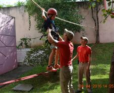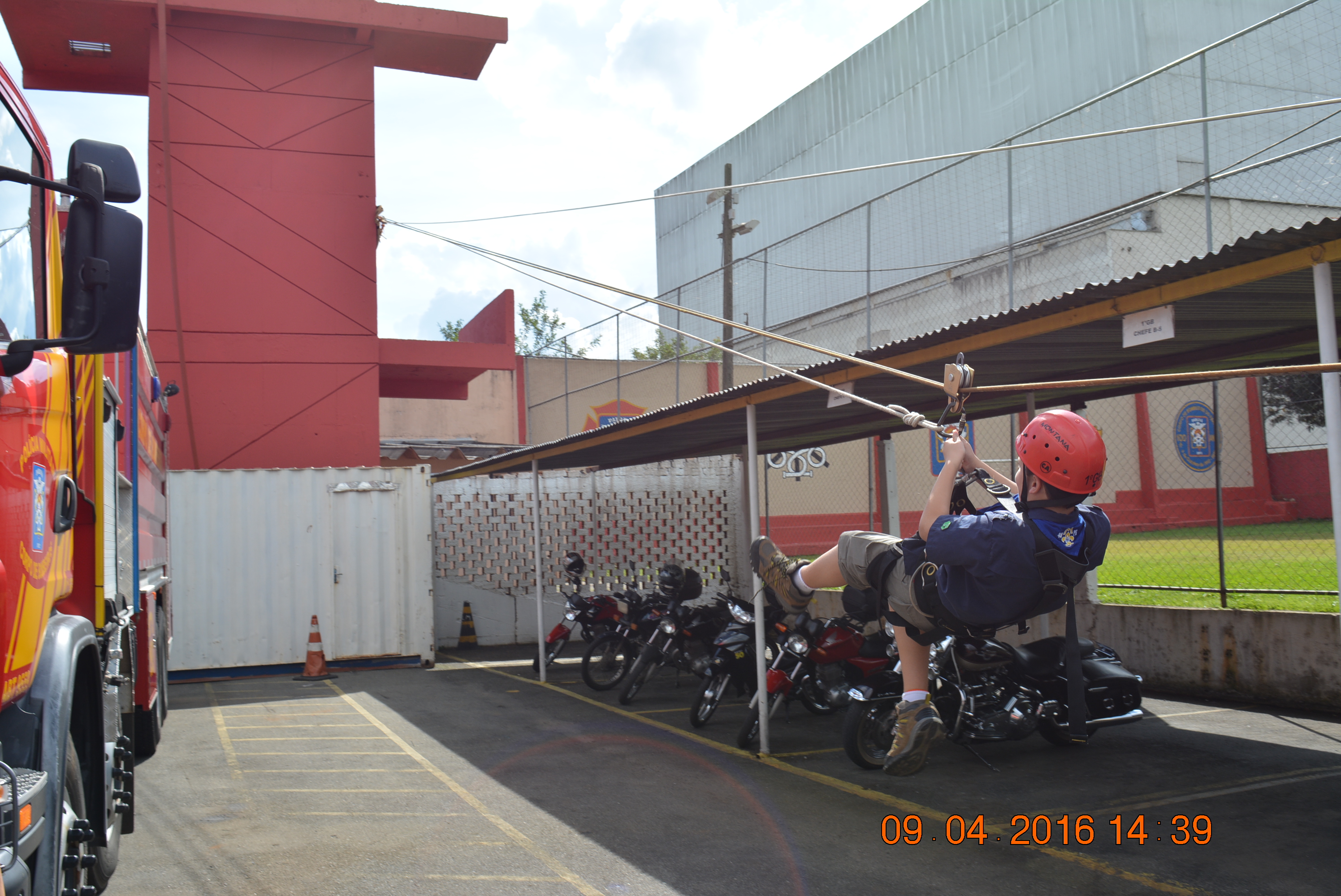 O período da tarde foi definido por um cronograma composto por três bases, sendo elas de Primeiros Socorros, demonstração de materiais de combate a incêndio com armação de linha e a pista de cordas.