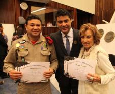 O Sub Tenente QPM 2-0 Daril Jorge Pinheiro, foi homenageado, representando os Bombeiros do Estado do Paraná, classe escolhida pelo Exmo. Senhor Deputado Marcelo Rangel, para receber a condecoração.
