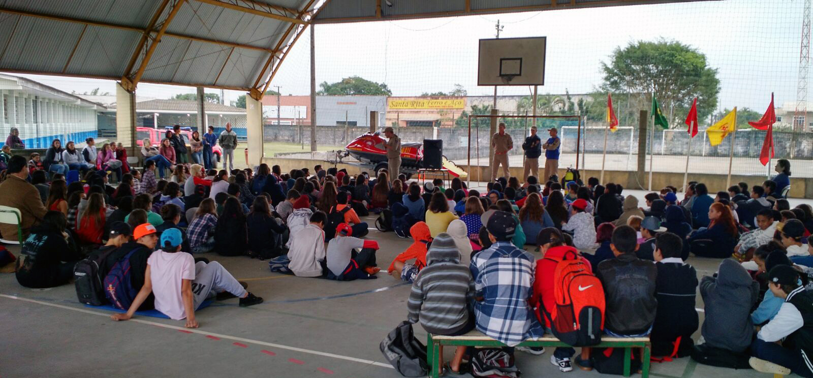 “Fizemos uma dinâmica com os alunos, repassando informações pertinentes e em seguida uma gincana com perguntas e repostas. A aceitação foi grande e o objetivo de alertar os jovens sobre assuntos importantes, como o significado de cada bandeira de sinalização nas praias foi alcançado.” Disse o Subtenente Portes, um dos envolvidos na atividade.