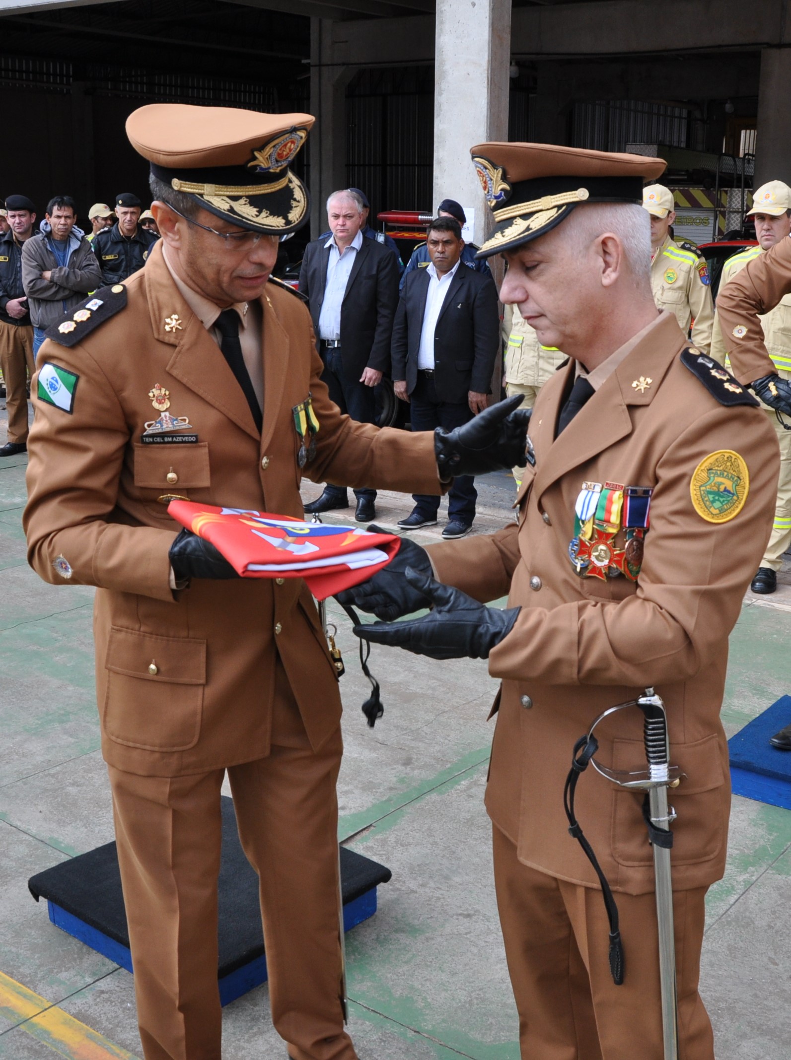 Durante a solenidade o Comandante do Corpo de Bombeiros da Polícia Militar do Paraná Coronel Manoel Vasco De Figueiredo Junior, fez pronunciamento ao Tenente-Coronel Azevedo, o parabenizando pelo honroso trabalho realizado durante os dois anos em que esteve na liderança do 11º GB, sobretudo enaltecendo seu bom trabalho durante a pandemia e nas novas áreas de atuação do Bombeiro Militar, as rodovias pedagiadas, além de desejar sucesso ao novo Comandante Tenente-Coronel Zotelli, evidênciando as raízes de sua família na região de Apucarana.