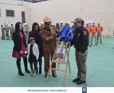 O Projeto Bombeiro Mirim também fez uma homenagem ao Major Saqueta oferecendo um mimo em agradecimento a sua dedicação com essas crianças.