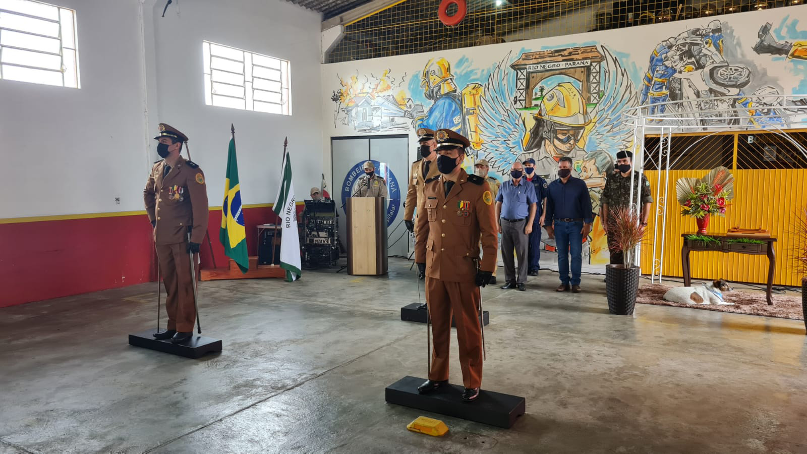 Nesta terça-feira (15/02), o 6º Grupamento de Bombeiros realizou a cerimônia militar de passagem de Comando da 2ªSB/2ºSGB/6ºGB – Rio Negro, onde o 1º Ten. QOBM Rafael Lechinhoski Calsavara passou a função de Comandante da Seção de Bombeiros ao 2º Ten. QOBM Ricardo Augusto Maioque Baggio. A solenidade – que observou os cuidados necessários ao enfrentamento da COVID-19 - contou com o prestígio do Comandante do 6º GB, Ten.-Cel QOBM Emerson José Guimarães Ferreira; do Comandante do 5º RCC, Ten.-Cel de Cavalaria Jonas Nunes de Almeida Junior; do Presidente da Câmara de Vereadores de Rio Negro, Ricardo Furquim; do Prefeito Municipal de Rio Negro James Karson Valério, além de outras autoridades civis e militares.