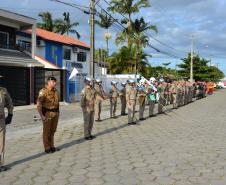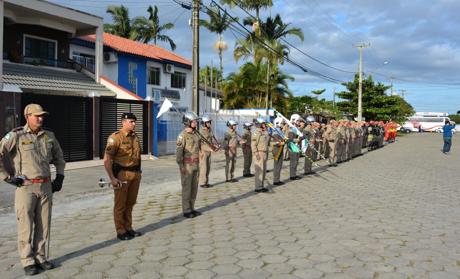 Abrilhantada pela banda de música da Polícia Militar do Paraná o desfile da tropa às autoridades contou com o efetivo das Subunidades do litoral que estavam paramentadas com os equipamentos de proteção individual das mais diversas atividades exercidas pela corporação no cumprimento da missão constitucional.