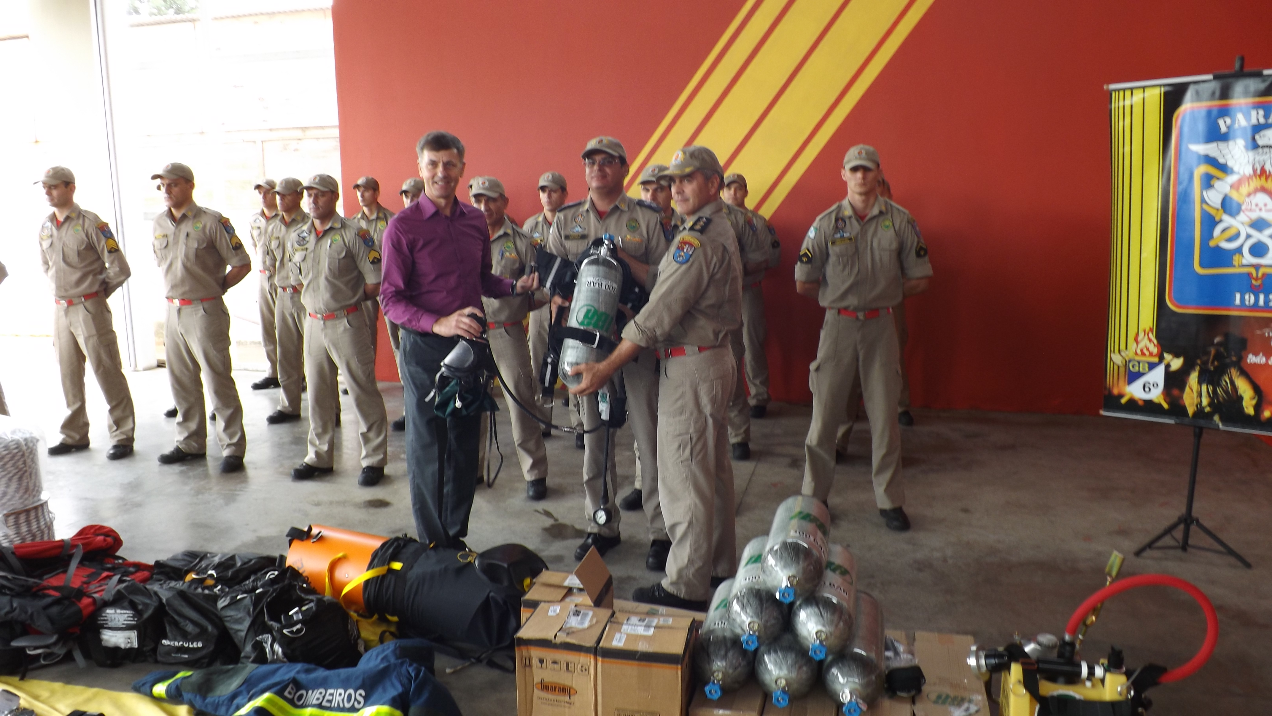 Foram entregues de forma simbólica ao Comandante do Posto de Bombeiros de Pinhais – 1º Tenente QOBM Flávio Ferreira Machado, vários equipamentos como por exemplo barco inflável, cilindros de ar comprimido, aparelhos autônomos, aparelhos rádio comunicadores digitais portáteis, maca para resgate de pessoas do tipo envelope, tripé para resgate de pessoas em espaços confinados (poços ou buracos profundos), materiais para salvamento em altura, aparelhos para incêndio florestal pinga fogo, aplicador de espuma de ponta do tipo Propak, além de diversos equipamentos como computadores, impressoras, fogão industrial, geladeira, entre outros. Estes equipamentos proporcionarão diretamente um melhor atendimento para a população de Pinhais, investimento este aproximado em 250 mil reais.