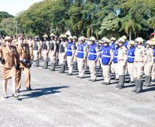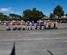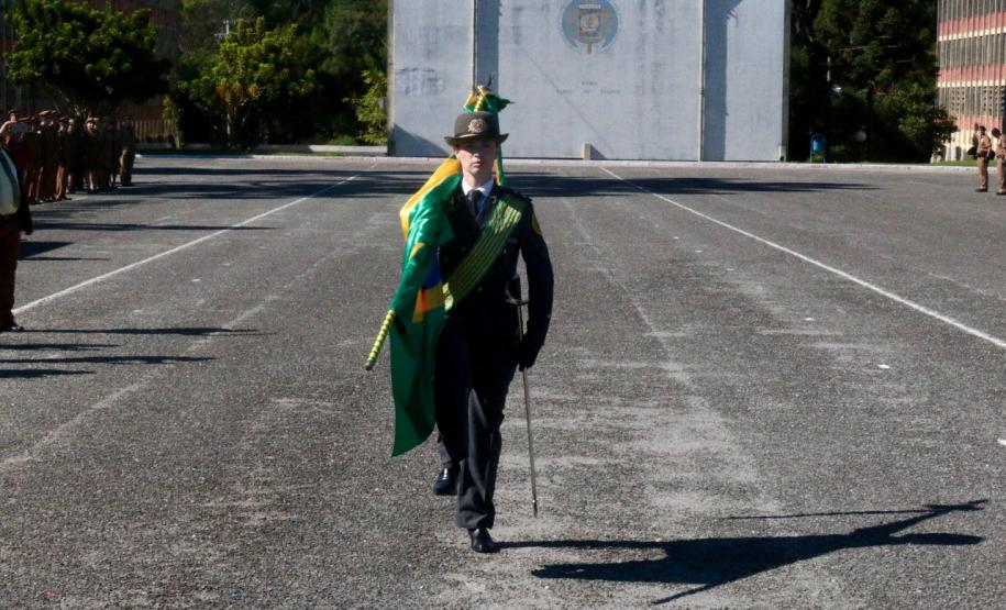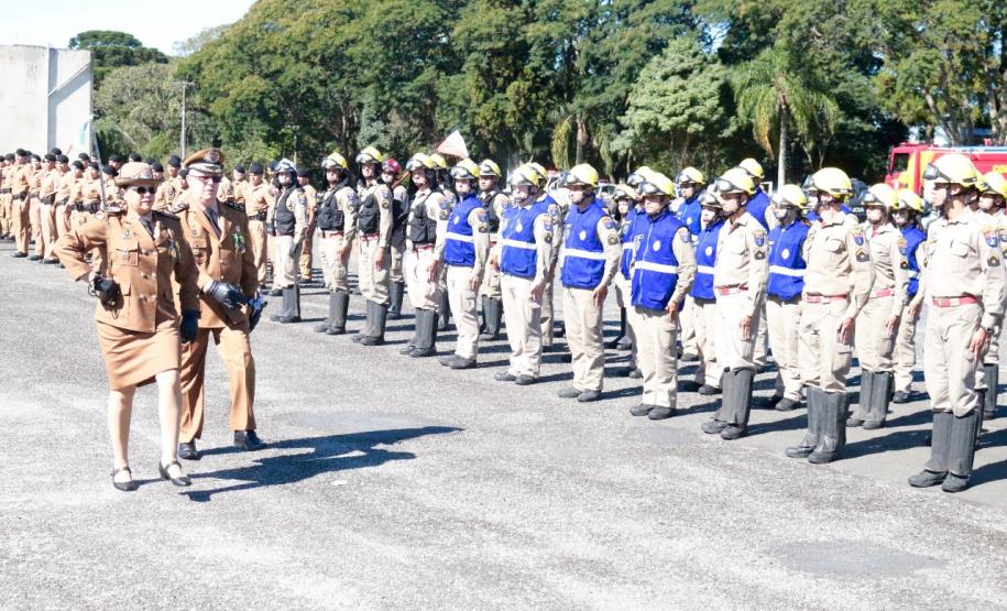 Em continuidade à cerimônia, os Comandantes sucessor e sucedido fizeram a tradicional revista à tropa, durante a qual foi lido o curriculum da Comandante-Geral da PMPR. Logo após, o efetivo dos batalhões e unidades especializadas da Polícia Militar desfilaram em continência a coronel Audilene sob os acordes da Banda de Música da PM.