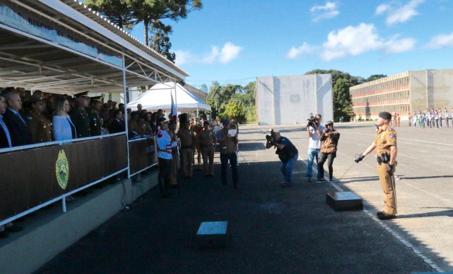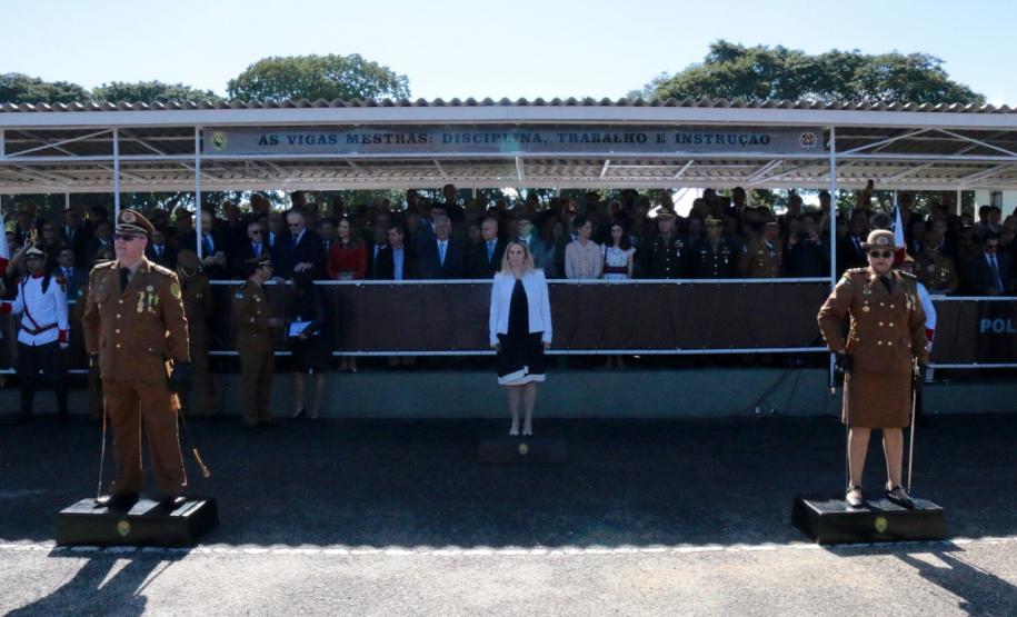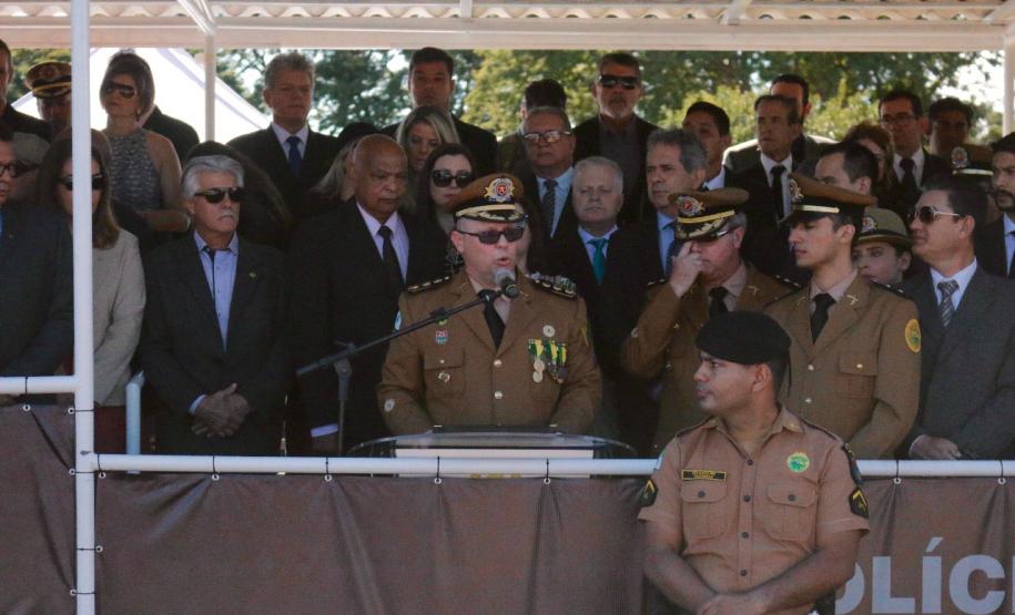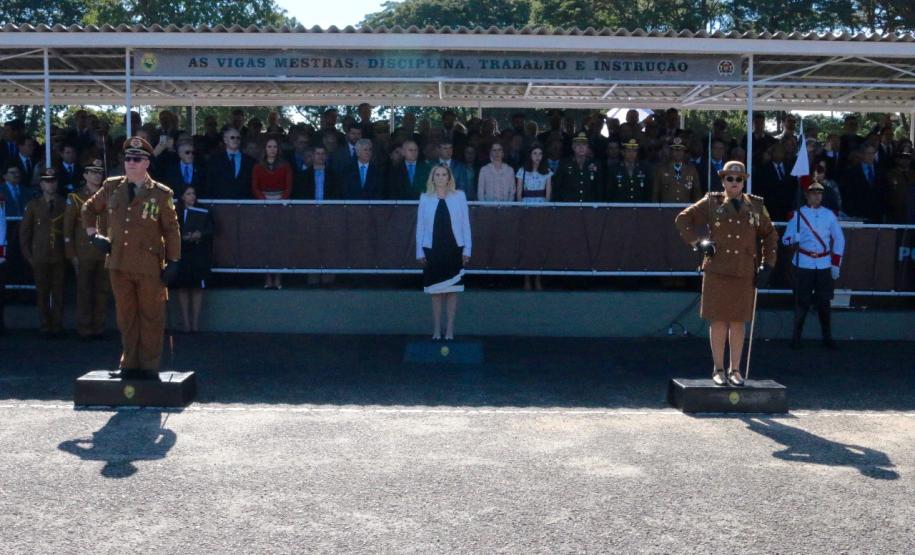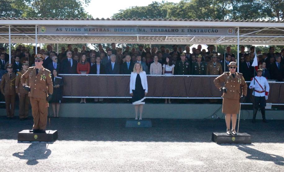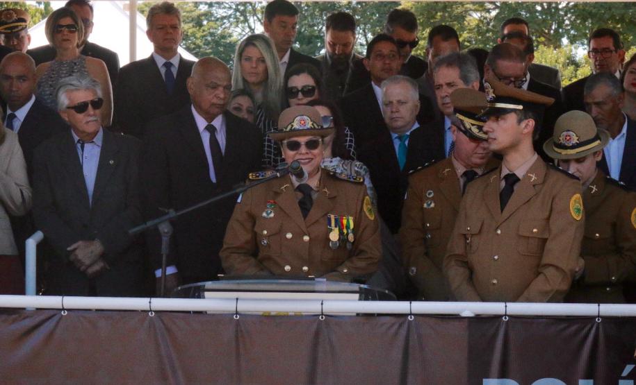 O evento iniciou-se com as honras militares e a apresentação regulamentar feita pelo Comandante da tropa, tenente-coronel Sérgio Augusto Ramos. Em seguida ocorreu a leitura do ato oficial de exoneração do Comandante sucedido, coronel Tortato, e do elogio a este Oficial, no qual a Governadora Cida Borghetti ressaltou seus feitos a frente da instituição. Também foi feita a leitura do ato oficial de nomeação da nova Comandante-Geral, coronel Audilene.