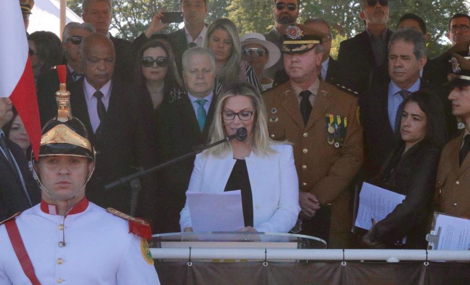 “É uma satisfação e uma honra empossar a primeira mulher Comandante da Polícia Militar do Paraná. A coronel Audielene tem uma folha de serviços prestados a gloriosa instituição e domínio da tropa, reunindo condições para comandar este alto posto e será, em 163 anos, a primeira mulher a chefiar este cargo. No Brasil apenas duas mulheres desempenharam esta função e acredito que a coronel Audilene trará a serenidade, a determinação, o compromisso e a força da mulher. É um novo momento em que o Paraná está sendo pioneiro em várias questões e o que buscamos é um estado melhor, com segurança de qualidade”, afirmou a Governadora.