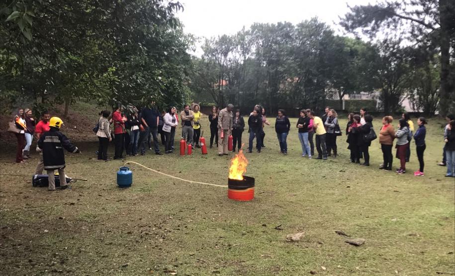 Foram realizados treinamentos práticos de primeiros socorros e de combate a princípios incêndio, com o objetivo de capacitar os profissionais para agir em situações de emergência.