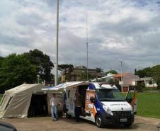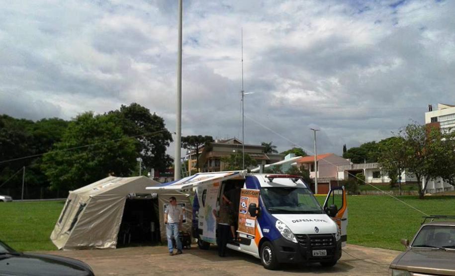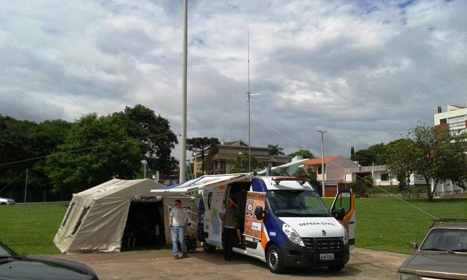 Cada CORPDEC montou uma estação de radioamador junto ao posto móvel da Defesa Civil.