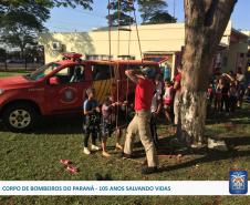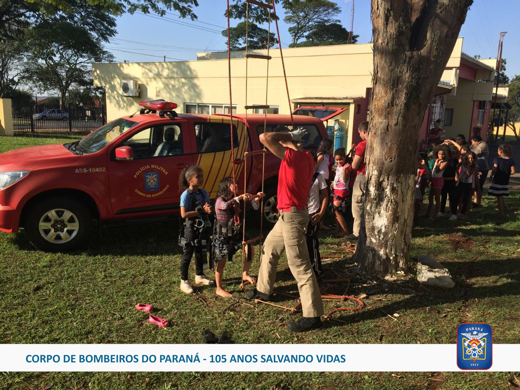 O Corpo de Bombeiros de Londrina recebeu na tarde do quinta-feira (24), 41 crianças, com idade entre 06 e 12 anos, atendidas pelo Projeto de Serviço de Convivência e Fortalecimento de Vínculos – Pastoral de Nazaré-, localizada na região oeste da cidade de Londrina. Na oportunidade, as crianças puderam conhecer as instalações, viaturas e a rotina da atividade bombeiro militar, além de receber orientações sobre a prevenção de acidentes domésticos e participarem de atividades de arvorismo com tirolesa e travessia de cordas suspensas, previamente instaladas no Posto Zona Norte de Londrina.