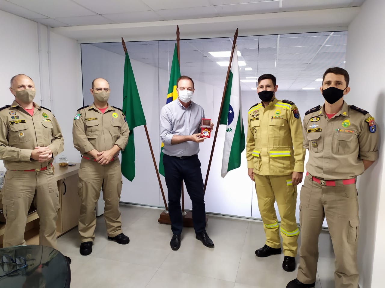 O prefeito Helder Lazarotto recebeu na última quarta-feira a visita do Comando do 7º Grupamento de Bombeiros, pertencente ao 1º Comando Regional de Bombeiros Militar, com a presença do Comandante do 7º GB, Major Garcez; do Subcomandante Major Marcelo Silva; do B/3 do 7º GB, Major Rivelto; e do Comandante do 1º SGB do 7º GB, Tenente Siloto.