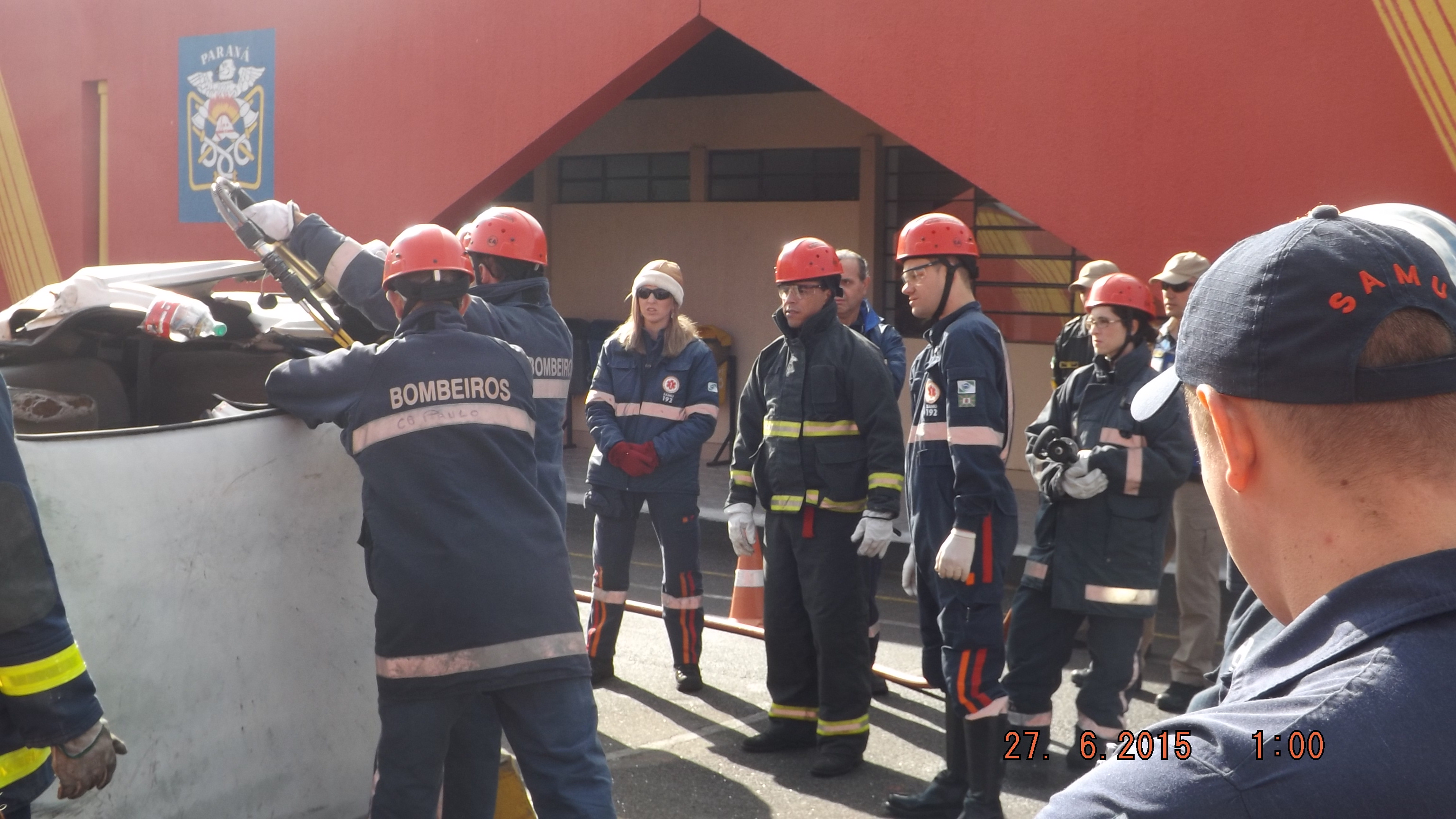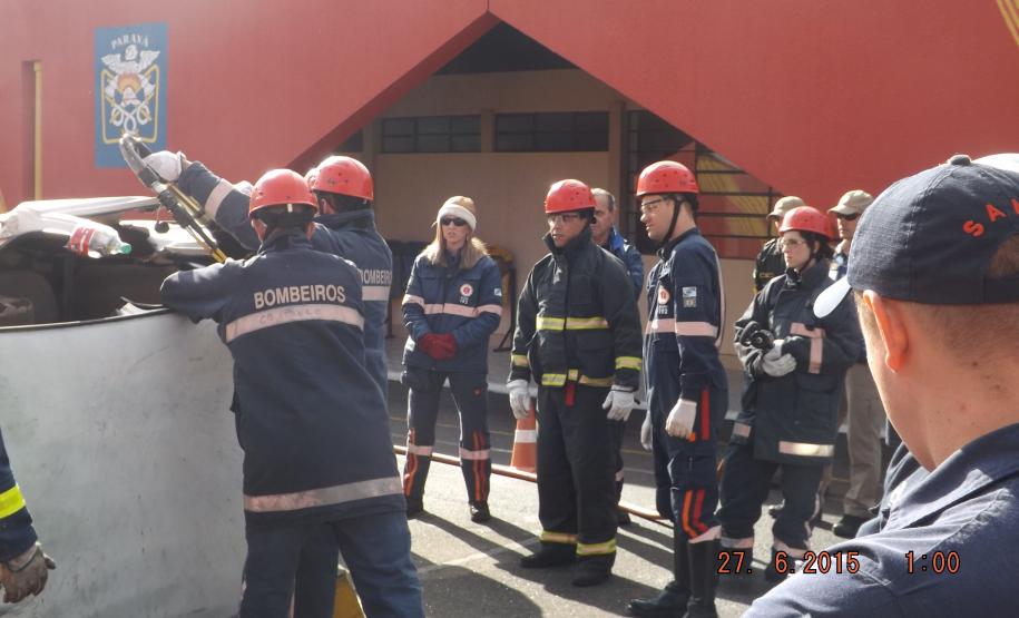E para finalizar o nivelamento, foi realizado na manhã seguinte, um treinamento, em que os profissionais puderam praticar o atendimento a vitima presa nas ferragens de um veículo.