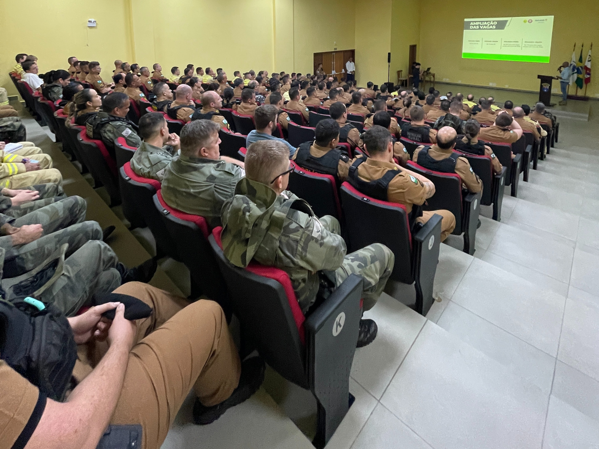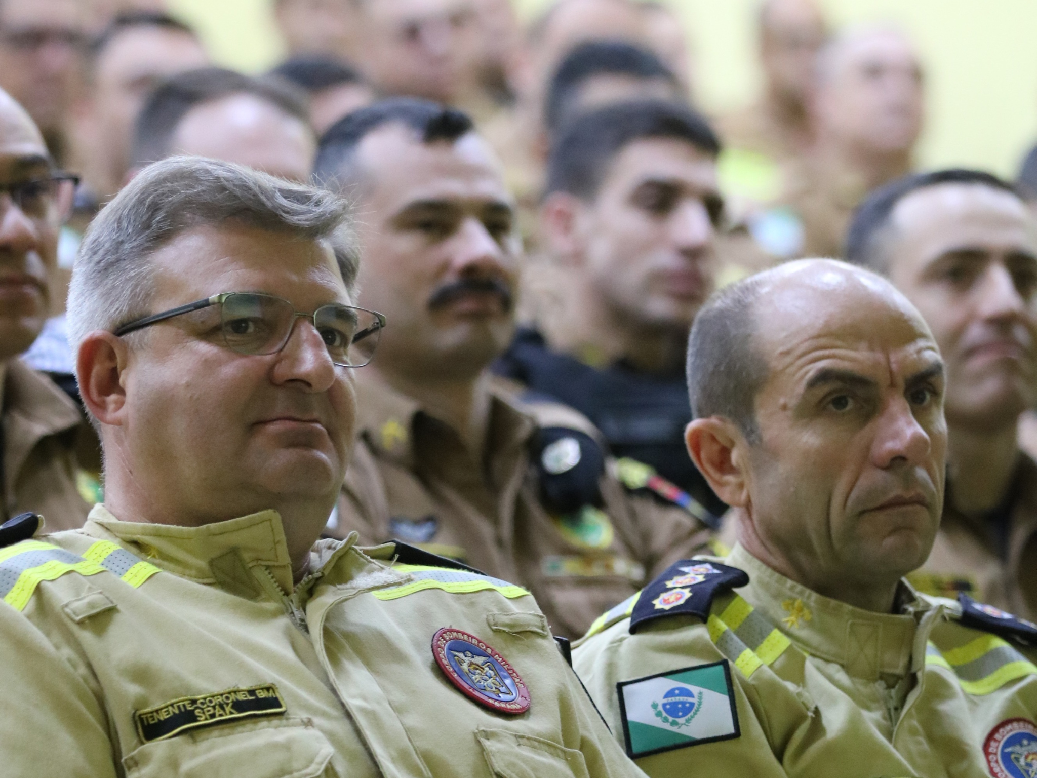 Na manhã de hoje (20), o secretário da Segurança Pública do Paraná, Coronel Hudson Leôncio Teixeira, se reuniu com os efetivos do 3º Comando Regional do Corpo de Bombeiros Militar do Paraná (CBMPR) e do 5º Comando Regional da Polícia Militar (PMPR).