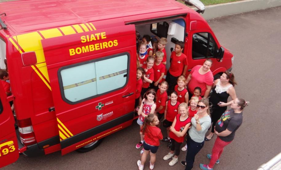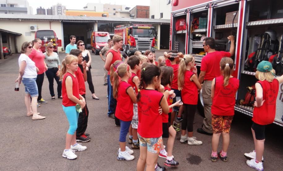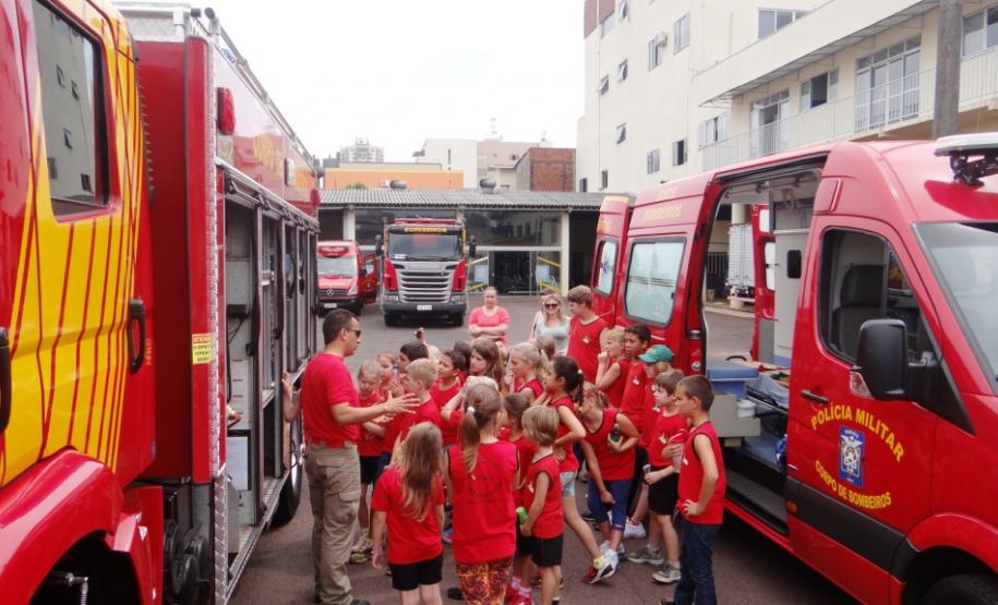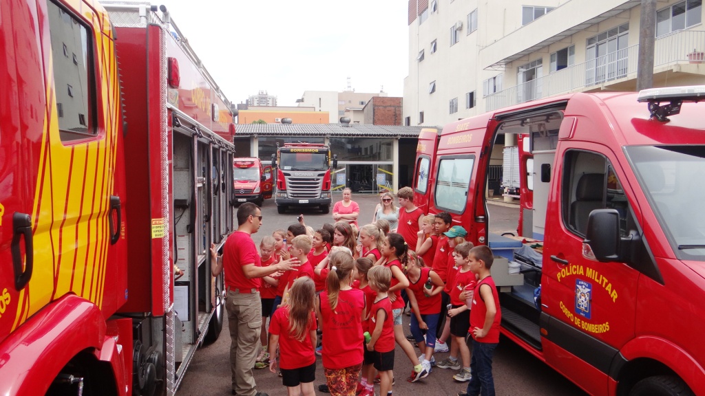 Durante a visita, os alunos e professoras responsáveis puderam conhecer as instalações do Quartel Central, além de uma apresentação dos equipamentos utilizados pela Auto Ambulância (AA) e do Caminhão de Combate a Incêndio e Salvamento (ABTR).