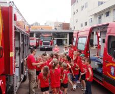 Na manhã desta quarta-feira (11), a sede do 4º Grupamento de Bombeiros recebeu a visita de alunos da rede de educação infantil do município de Marechal Cândido Rondon, Escola Municipal São João Batista.