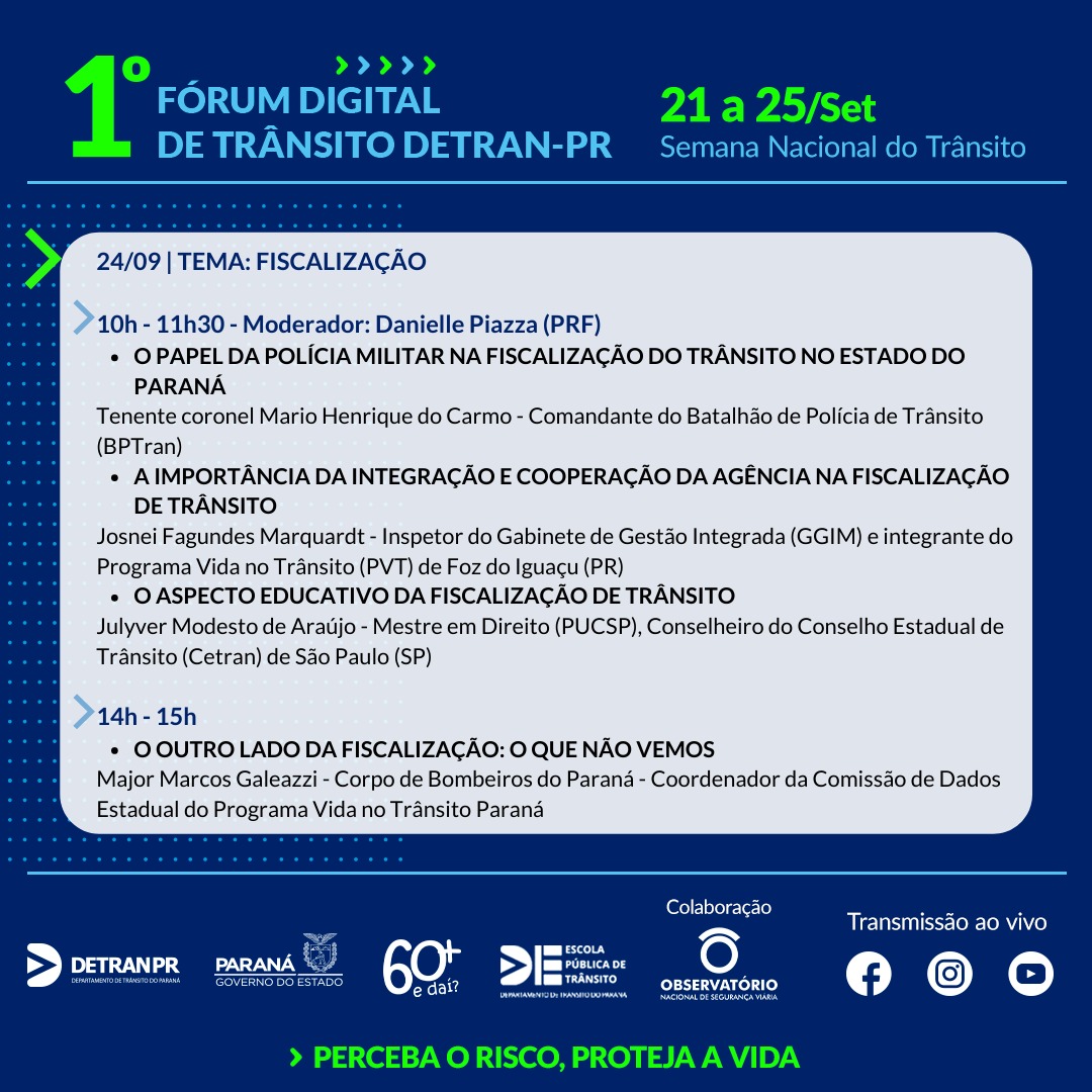 O Departamento de Trânsito do Paraná (Detran-PR) abriu, na manhã da última sexta-feira, 18, a Semana Nacional de Trânsito (SNT), que este ano será comemorado por meio do 1º Fórum Digital do Detran-PR, e tem como tema “Perceba o risco. Proteja a vida”.