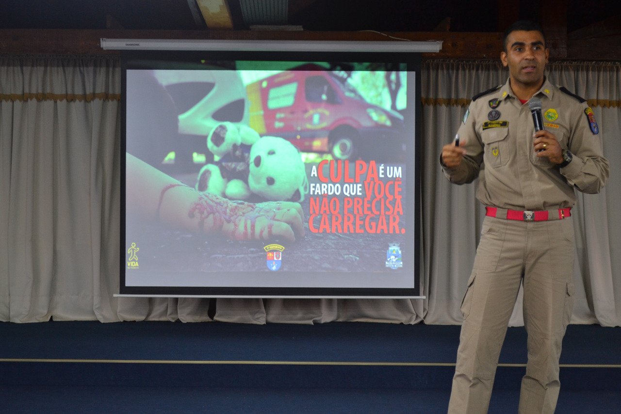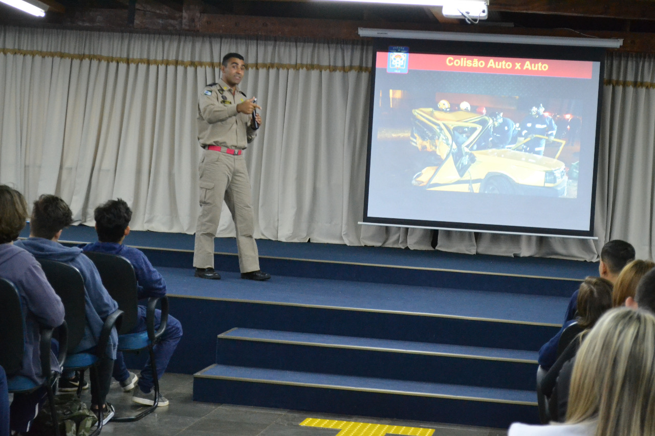 A palestra "Rompendo o Aço, Salvando Vidas", repassada pelo 2º Tenente Rogério, tem como principal objetivo orientar a população sobre os riscos que o trânsito envolve.