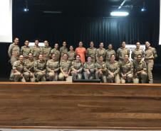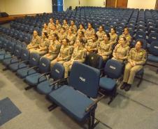 Em seguida, o 1º Grupamento recebeu a Coronel da Reserva Rita Aparecida de Oliveira, que fez parte da primeira de turma de mulheres policiais militares do Paraná, no ano de 1977. A Coronel Rita Aparecida contou sobre a sua experiência na carreira militar, desde o seu ingresso até a sua saída da Corporação, as dificuldades e conquistas alcançadas, de forma a motivar e demonstrar a capacidade e o profissionalismo da mulher dentro da Corporação, seja na Polícia Militar ou no Corpo de Bombeiros.
