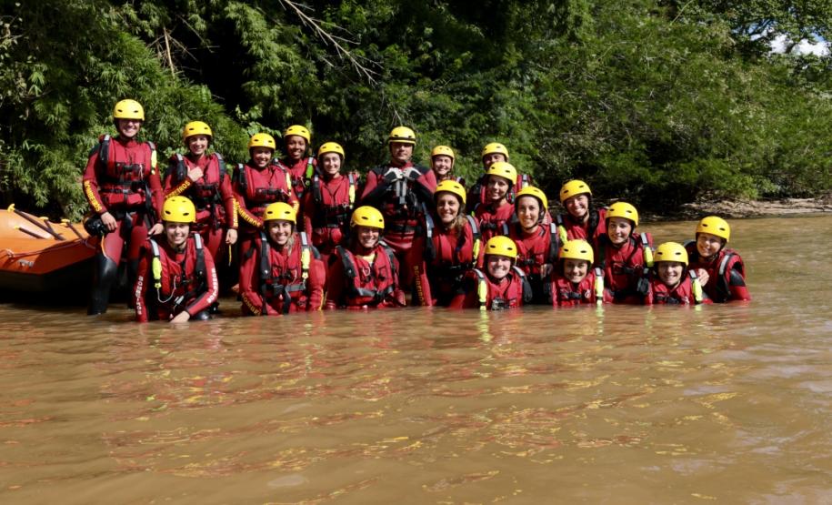 E na sexta-feira(09) foi realizada uma instrução de salvamento em águas rápidas para finalizar o evento, onde foram repassadas às militares procedimentos básicos de operação com embarcação inflável, técnicas de remo, resgate e busca.