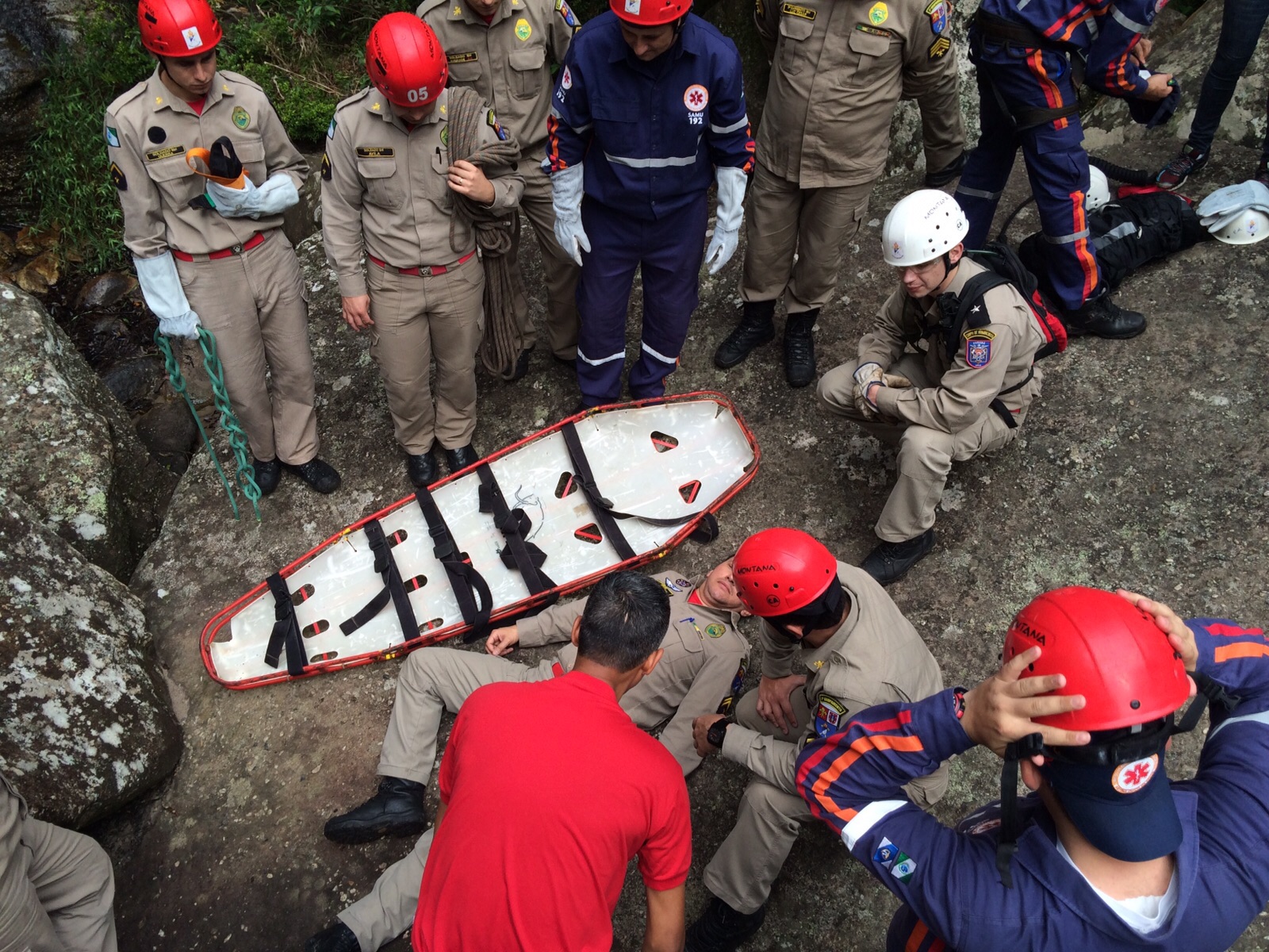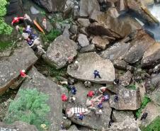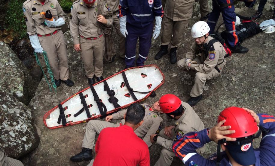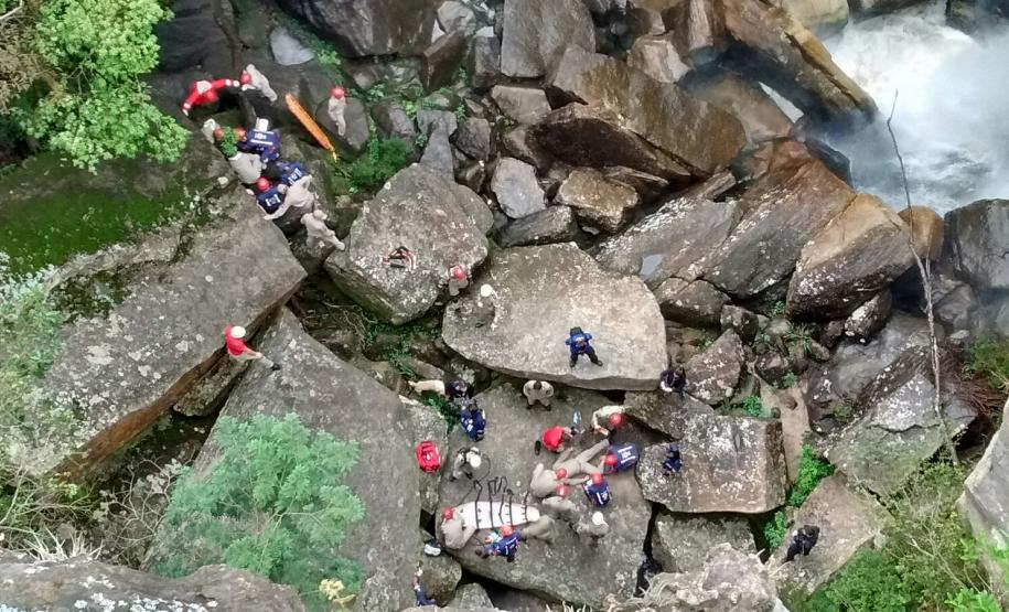 Ainda, no último dia de treinamento os socorristas foram levados à Cachoeira do Rio São Jorge, onde simularam um resgate com todas as dificuldades e peculiaridades que o ambiente proporciona.
