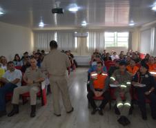 Neste sábado (14), no quartel sede do 6º Grupamento, aconteceram as aulas teóricas sobre combate a incêndios florestais para aproximadamente 80 integrantes da Federação Paranaense de Montanhismo.