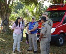 Os militares deslocaram com as viaturas e a equipe de plantão até a sede da APAE para fazer uma demonstração dos materiais e equipamentos de resgate utilizados pelo Corpo de Bombeiros.