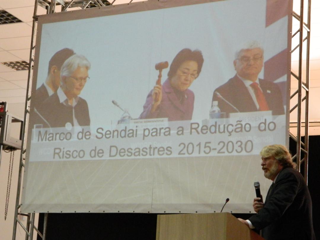 Palestraram durante o Simpósio o Senhor Armin Braun, Diretor do Ministério da Integração Nacional, o Secretário Chefe da Casa Militar e Coordenador de Proteção e Defesa Civil do Estado São Paulo, Cel. José Roberto Rodrigues de Oliveira com a palestra “Política estadual para redução de riscos de desastres: alinhamento ao marco de Sendai” e encerrou o ciclo no período da manhã o senhor Sidnei Furtado Fernandes, Chefe da campanha cidades resilientes no Brasil, falando sobre a “Campanha das cidades resilientes no Brasil”.