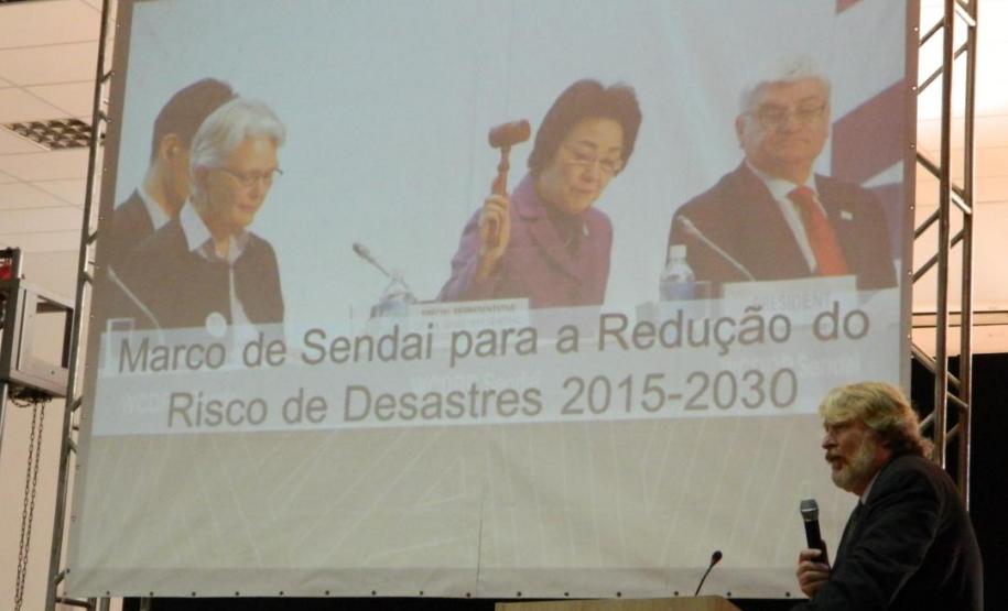 No período da tarde, palestrou o Senhor David Stevens, Chefe do escritório regional das Américas para redução de desastres da ONU, sobre “Reduzindo os riscos atuais e futuros”, seguido pela palavra do Ten.-Cel. Edemilson de Barros que falou sobre “Plano de contingência online no apoio às cidades resilientes” e, encerrando o ciclo de palestras do simpósio, o Prof° Doutorando da UTFPR Wagner Aguiar que falou sobre “Bacia hidrográfica como unidade de estudo: Bacia do rio Marrecas”.