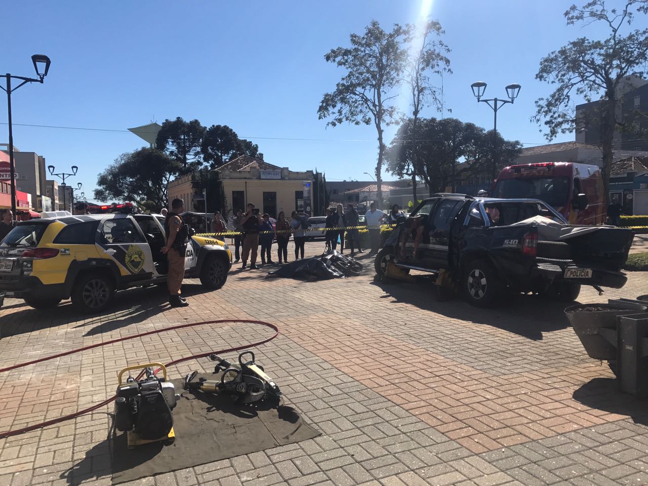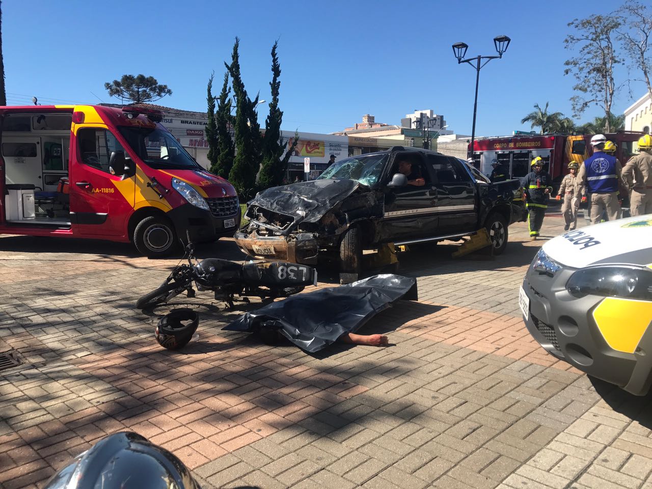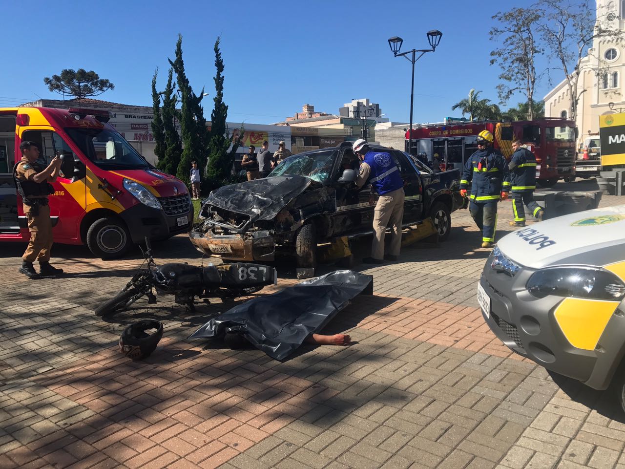 Na data de hoje foi realizada, no centro de São José dos Pinhais, uma simulação de acidente de trânsito em alusão à campanha do “Maio Amarelo”.