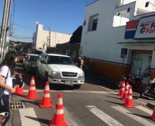 Concomitante a isso, foram distribuídos panfletos de conscientização no trânsito tanto para pedestres quanto para motoristas que se deslocavam pelo local.