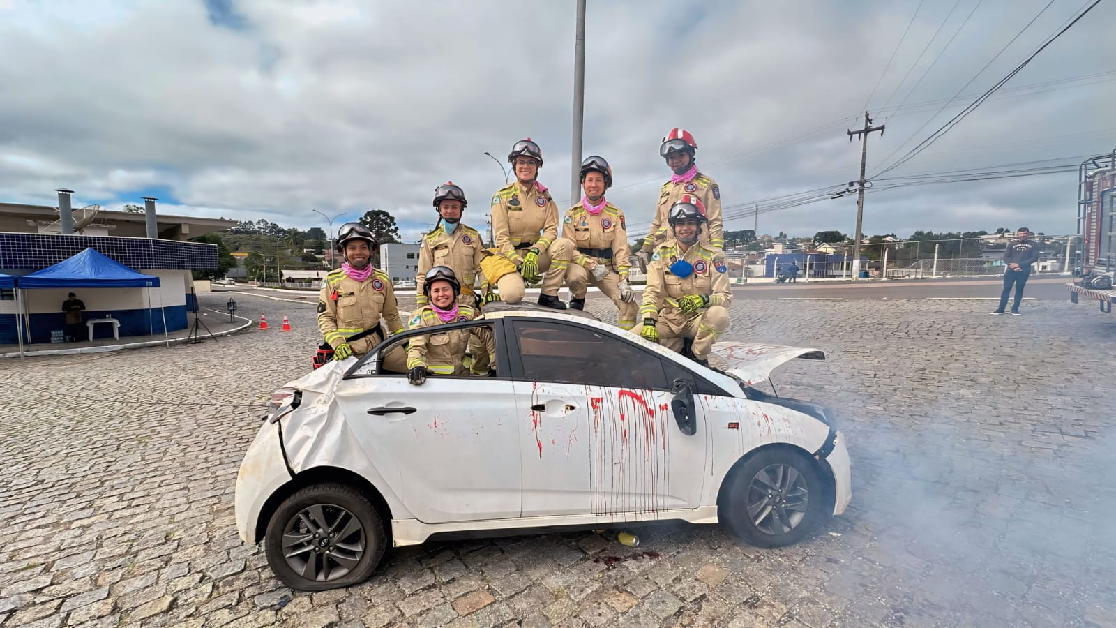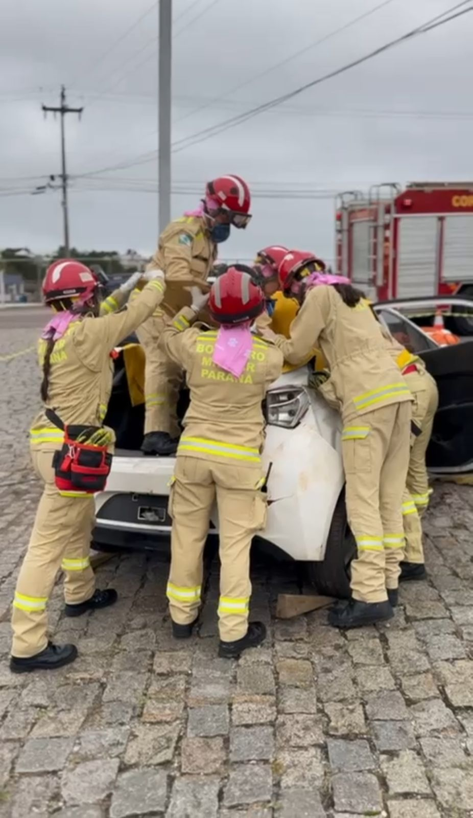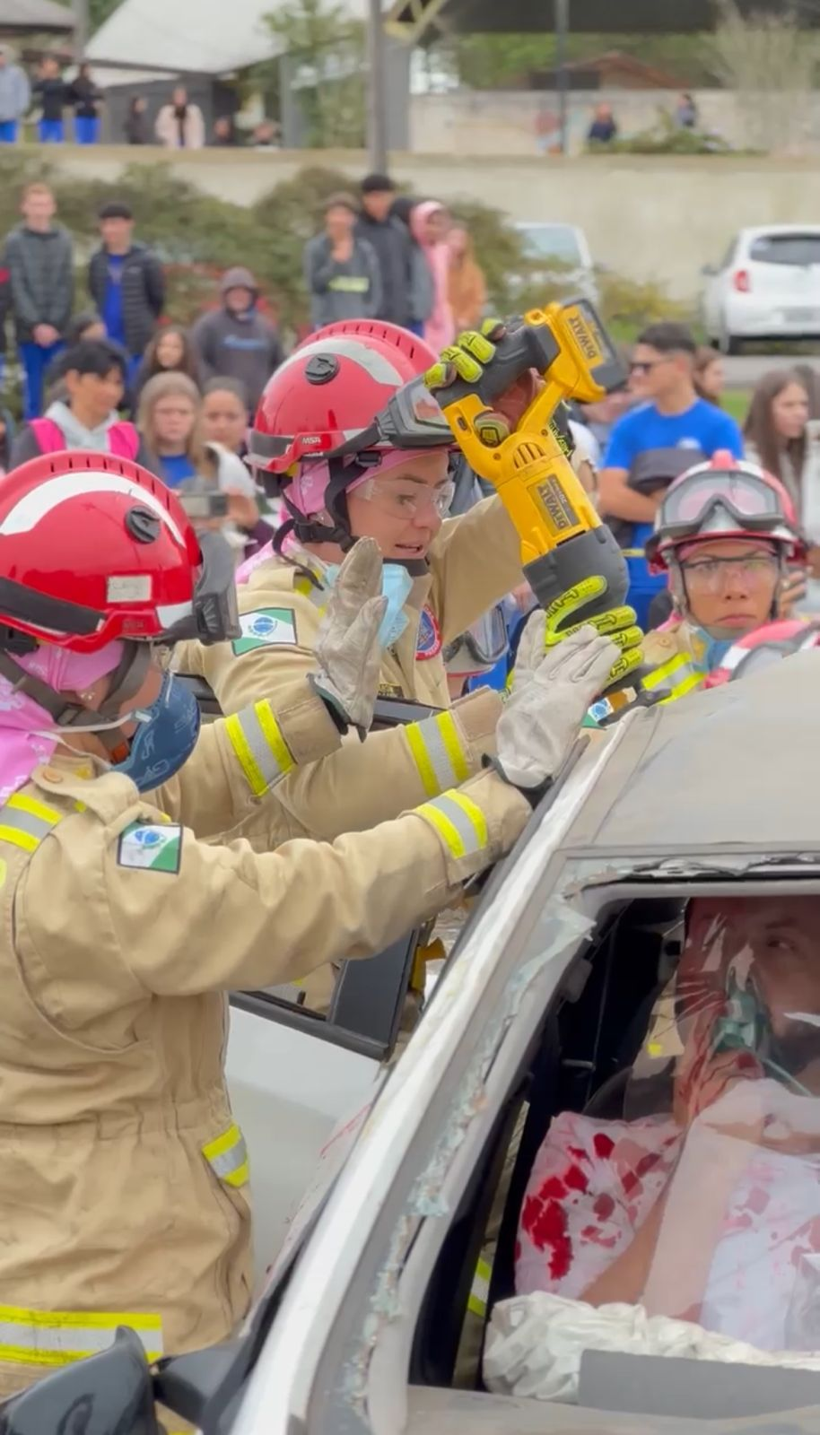 Na simulação, as bombeiras militares que compõem a STABFEM, Cb. Lell, Cb. Thalyta, Cb. Duana, Cb. Elisa, Sd. Cilinéia, Sd Ana, Sd. Moscardi e Sd. Bruna atuaram com maestria, utilizando as mais modernas ferramentas de acesso e liberação de vítimas presas às ferragens, além das técnicas de desencarceramento e de atendimento pré-hospitalar.