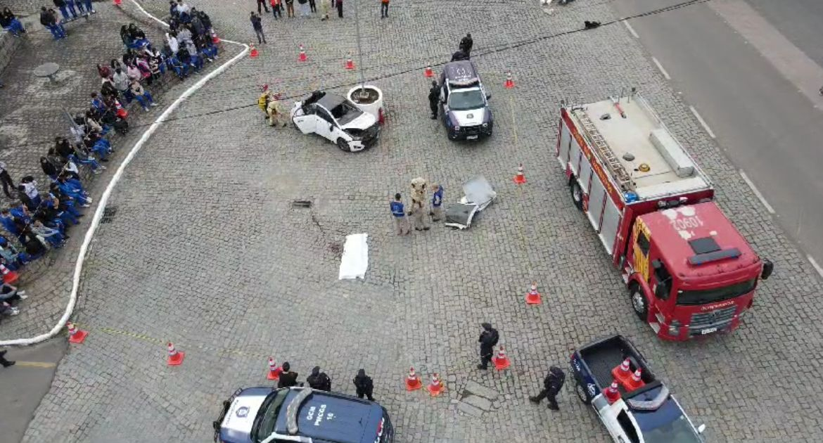 Alunos do 3º ano do Ensino Médio do Colégio Estadual Campos Sales, prestigiaram o evento que teve organização da Secretaria de Ordem Pública e Segurança, e colaboração da Defesa Civil, Deptran e Guarda Civil Municipal (GCM) de Campina Grande do Sul e o apoio do 7º Grupamento do Corpo de Bombeiros (7º GB) e da primeira equipe feminina de salvamento veicular do estado do Paraná, STABFEM.