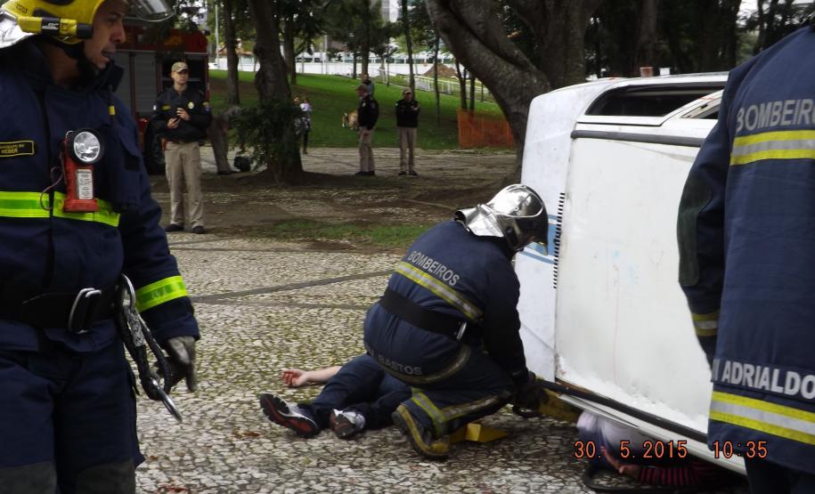 O simulado teve como principal cenário, um acidente automobílistico envolvendo 2 veículos e um microônibus. Considerando o protocolo de despacho, foram deslocadas as seguintes viaturas: uma auto ambulância preparada para dar o suporte básico de vida, um auto bomba tanque e resgate e devido a magnitude do evento foi utilizada também uma viatura auto posto de comando, responsável por organizar o posto de comando para a operação.
