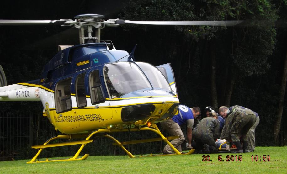 Essa atividade contou com o apoio da Secretaria da Saúde, Aeronave da Polícia Rodoviária Federal, além de 45 alunos do Curso de Enfermagem, os quais atuaram como as vítimas do acidente.