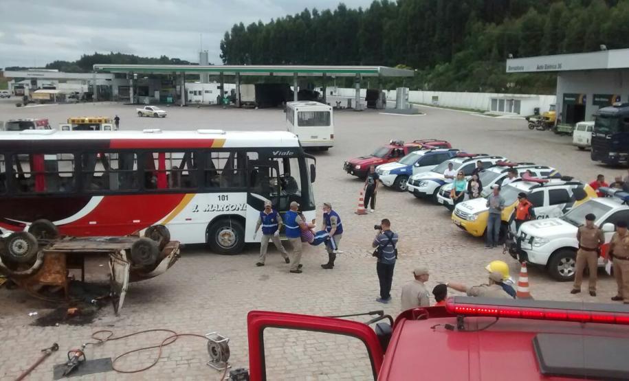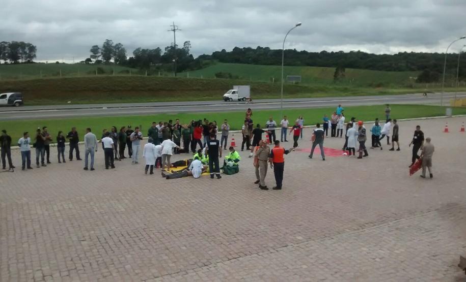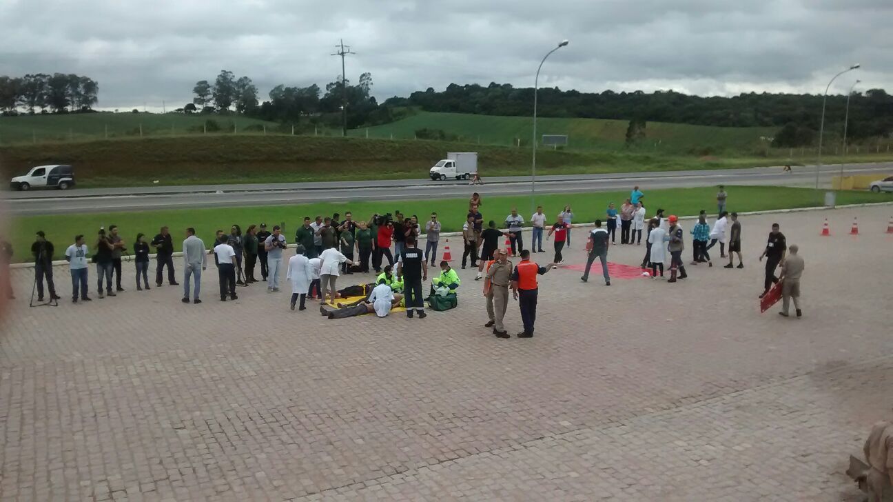 A situação envolvia a colisão entre um ônibus e dois automóveis, estando um deles capotado e com princípio de incêndio. No local 80 vítimas foram distribuídas, e atendidas com base no protocolo de AMUVI e doutrina de Sistema de Comando de Incidentes (SCI). Dez ambulâncias estiveram participando do exercício, além da equipe do Posto de Bombeiros de Fazenda Rio Grande, também participaram as equipes da UPA e SAMU’s de Fazenda Rio Grande, Curitiba, Mandirituba, Agudos do Sul e Tijucas do Sul, além da equipe de emergência da Concessionária Planalto Sul. Também abrilhantou o evento a participação da Aeronave da Polícia Rodoviária Federal, Casa Militar, Equipe de Radioamadores, Defesa Civil, Guardas Municipais, Polícia Militar, bem como os cursos de formação do 17º Batalhão da Polícia Militar com 90 alunos e 30 alunos da Guarda Municipal, além de mais 50 alunos do curso de formação de soldados do 6º Grupamento de Bombeiros. Ao todo mais de duzentas pessoas estiveram atuando.