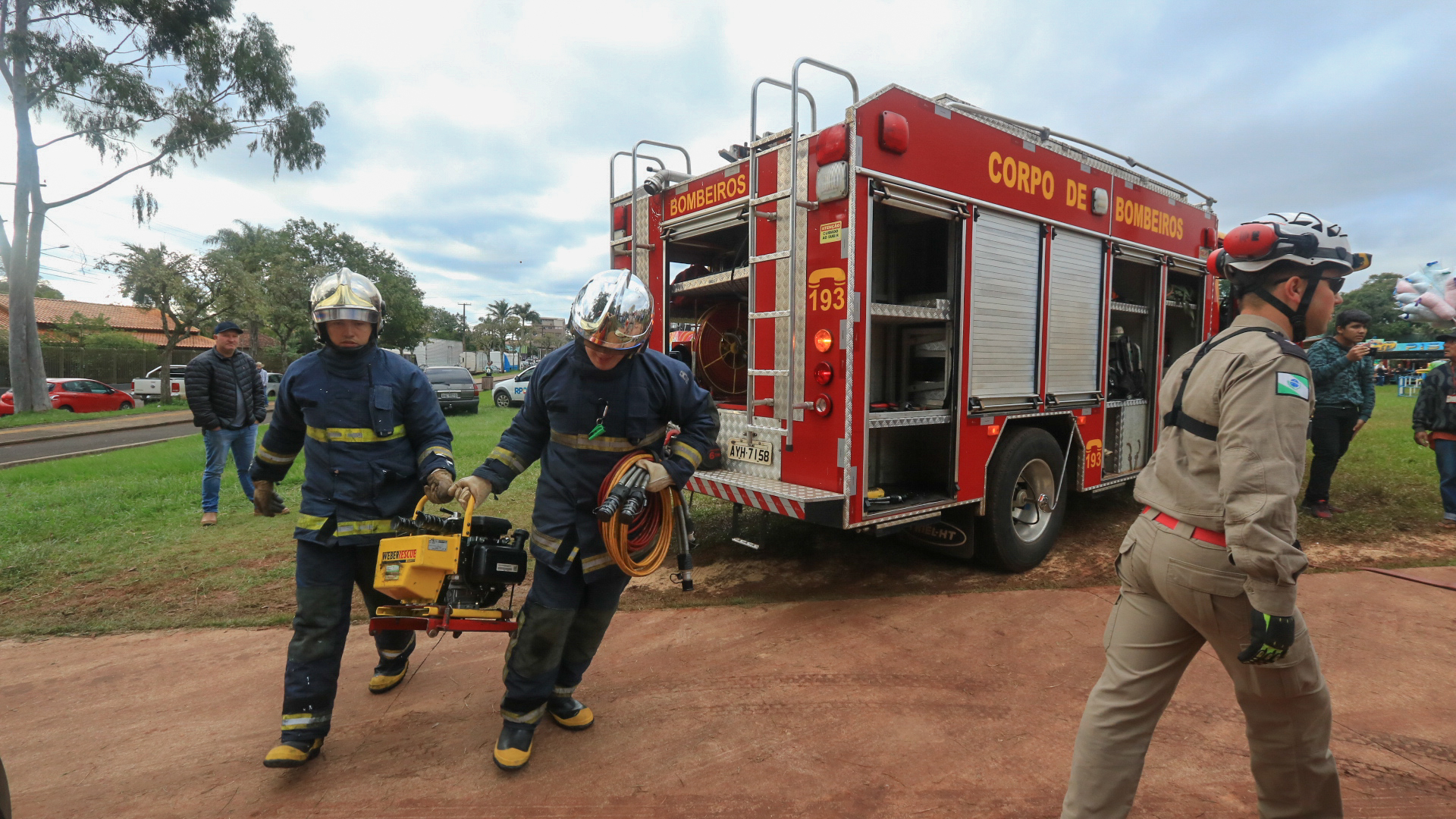 A atividade aconteceu no Gramadão, em frente ao Posto de Bombeiros Vila A, e contou com a presença dos bombeiros militares e policiais militares.