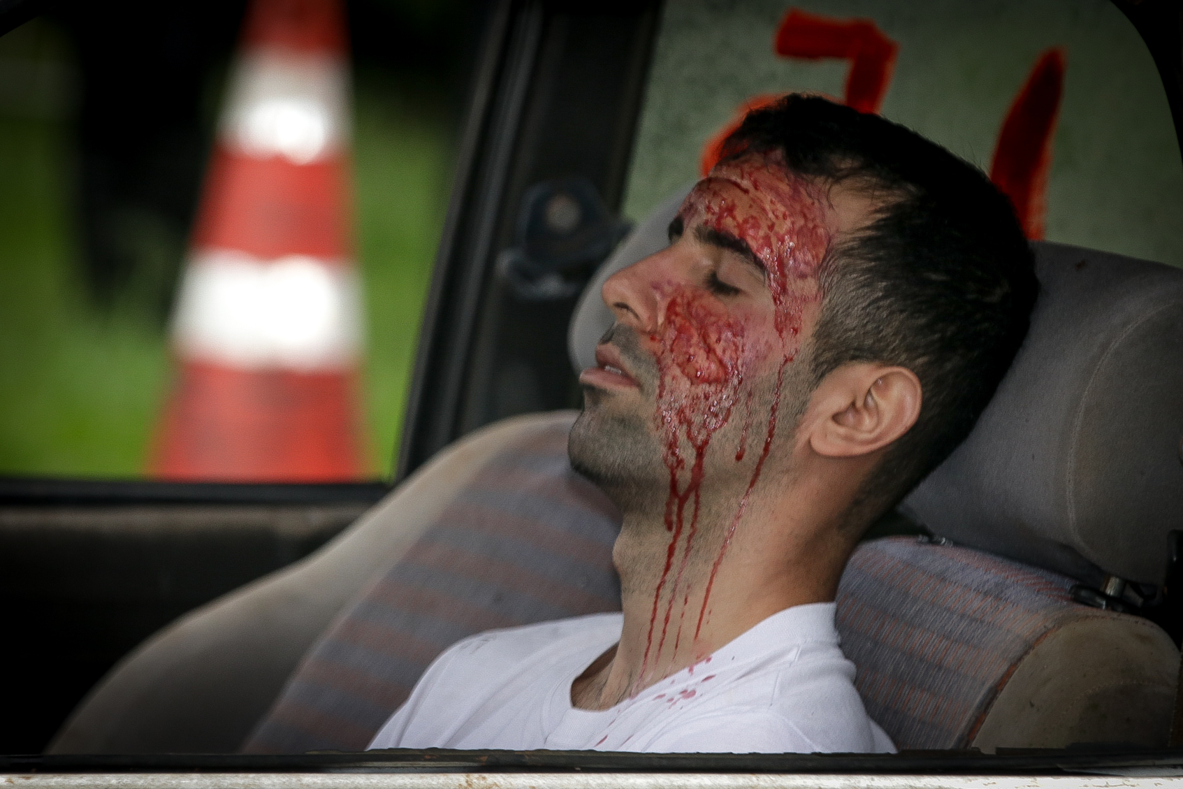 Na tarde de hoje (25), o 9º Grupamento de Bombeiros realizou um simulado de acidente de trânsito utilizando as técnicas de salvamento veicular e atendimento pré-hospitalar, demonstrando a elevada preparação das equipes de resgate.