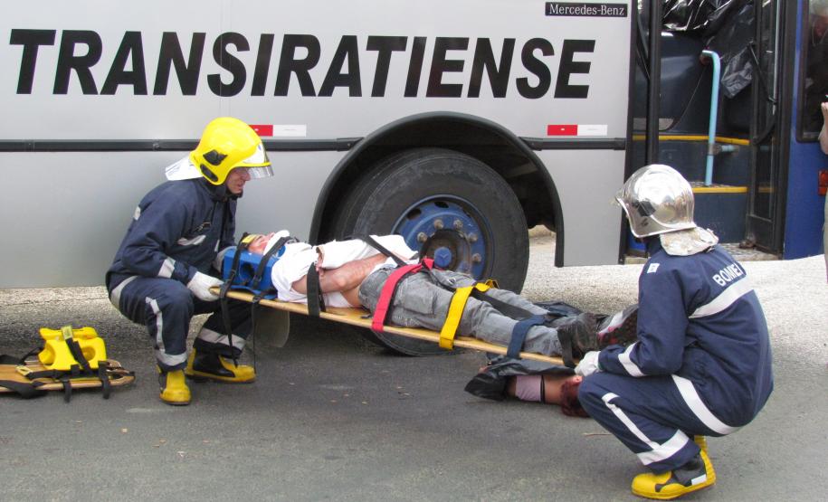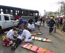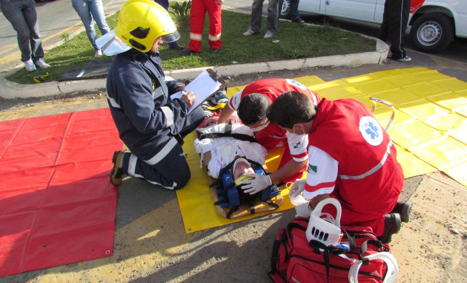 O exercício consistiu em uma colisão entre um ônibus e uma caminhonete com um total de 25 vítimas, sendo 7 em óbito, 5 em estado grave, 6 em estado moderado e 7 com pequenas escoriações.