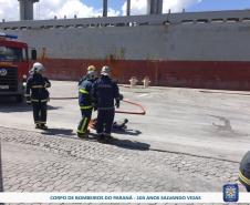O Corpo de Bombeiros, através da fração no município de Paranaguá, participou nesta quinta-feira, 09 de fevereiro de 2017, de um exercício simulado na faixa do Porto de Paranaguá, organizado pela Administração dos Portos de Paranaguá e Antonina (APPA). O evento foi composto de uma simulação de incêndio num guindaste da área portuária, seguido do acionamento do Corpo de Bombeiros e das empresas participantes do Plano de Ajuda Mútua - PAM - Paranaguá. A situação contou ainda com uma vítima fictícia de intoxicação no interior do guindaste incendiado, com necessidade de remoção através de outra máquina do mesmo tipo, situação esta similar à ocorrida no Porto de Itaqui, no Maranhão, em setembro de 2016. Os Bombeiros Militares chegaram ao local após 6 minutos do acionamento, equipados com dois caminhões de Combate a Incêndio, além de uma caminhonete de resgate, contabilizando 12 militares envolvidos diretamente. A missão da corporação foi a extinção do foco de incêndio, para a qual utilizou-se de canhões monitores que permitem a aplicação da água há distâncias seguras para os operadores. O exercício contou ainda com a participação do Orgão Gestor de Mão de Obra (OGMO) e da Guarda Portuária. Ao fim, foi realizada demonstração para utilização de um rebocador da empresa marítima SVITZER no combate ao incêndio.