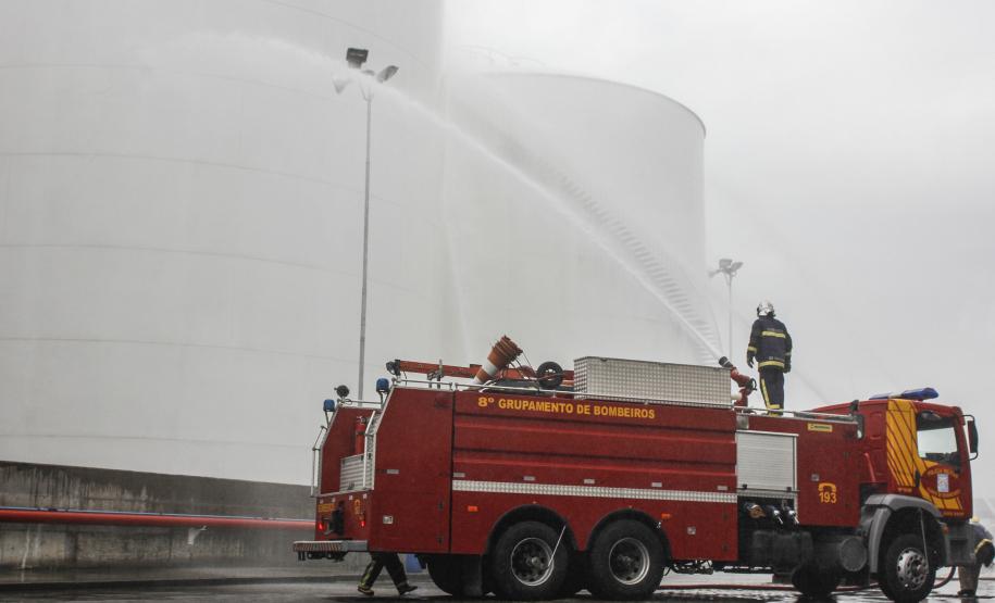 Na tarde desta quarta-feira, 29 de abril de 2015, Bombeiros do 8º Grupamento de Bombeiros do Paraná participaram ativamente do exercício simulado de incêndio em um tanque de armazenamento de óleo diesel, na empresa Cattalini Terminais Marítimos S/A, envolvendo o PAM (Plano de Auxílio Mútuo) do Porto de Paranaguá.