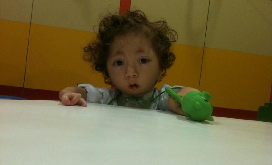 Mesmo com todos esses problemas, a criança sorri quando vê sua mãe, chora quando sente dor, não emite som ou ruídos, mas pode se ver as lágrimas escorrendo em seu rosto.