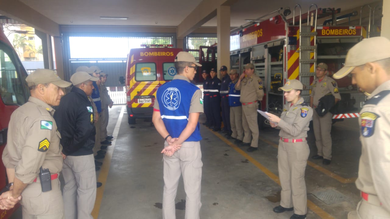 O último plantão dos Soldados Missaka e Chesco foi marcado por despedidas e homenagens, com o tradicional banho de mangueira.