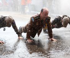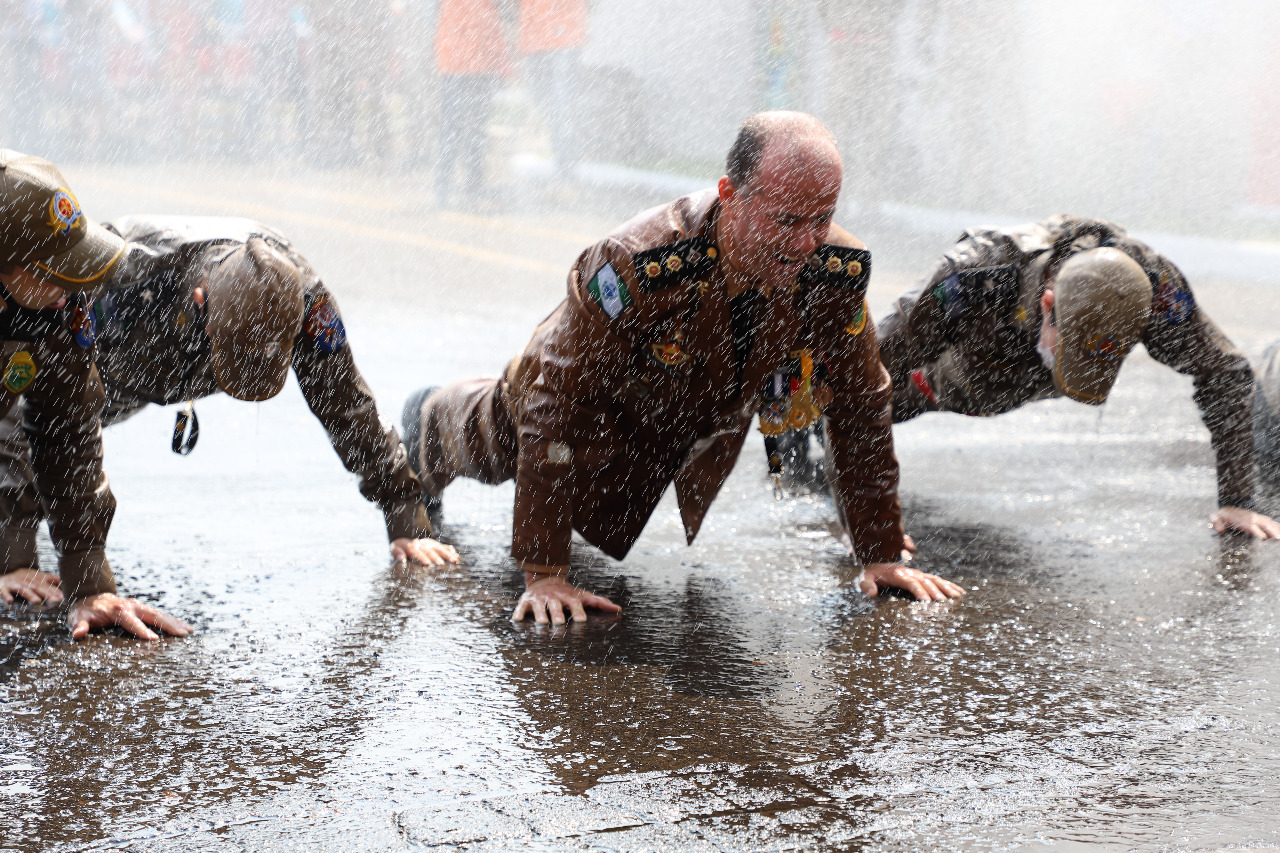 A Solenidade encerrou com o tradicional desfile militar em continência ao novo comandante, Major Marafigo, e o com a tradição do “banho de magueira” como forma de despedida ao Comandante Substituído, Tenente Coronel Wilson.
