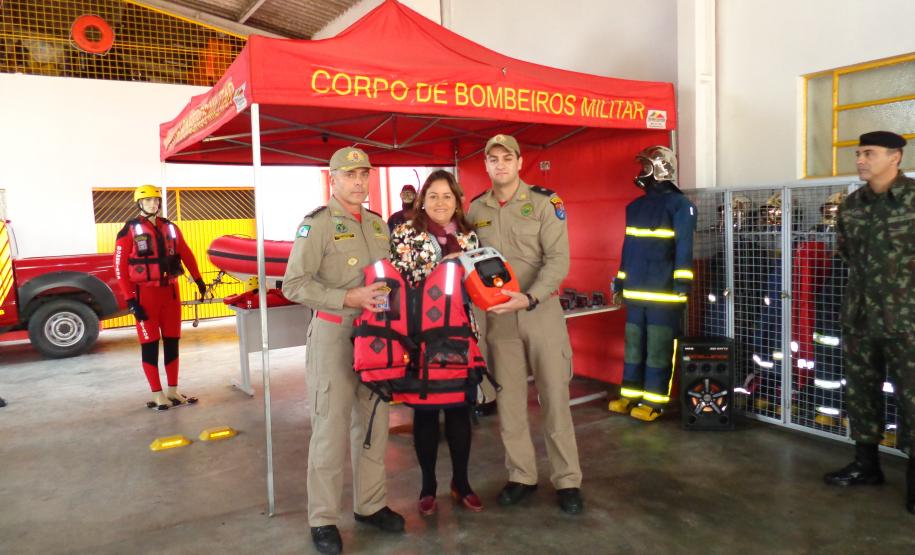 Na ocasião, foi realizada a entrega de um Desfibrilador Automático Externo (DEA) e de equipamentos de proteção individual para o atendimento de ocorrências envolvendo águas rápidas, materiais estes adquiridos através do FUNREBOM.