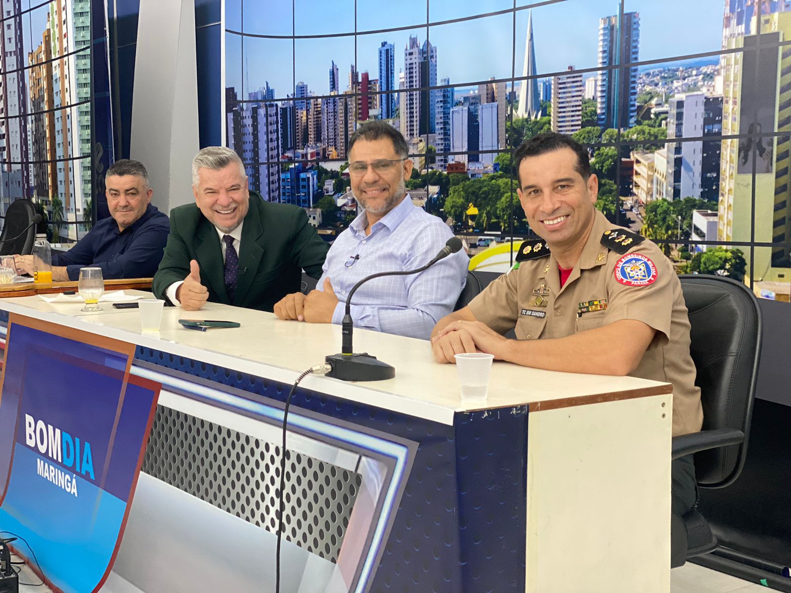 Quartel Central do 5ºGB em Maringá/PR (31/03/2023) - O novo comandante do 5º Grupamento do Corpo de Bombeiros Militar do Paraná, Tenente-Coronel Sandro, reuniu-se na manhã desta sexta (31) com o Deputado Delegado Jacovós para participar do programa de TV Bom Dia Maringá, veiculado no canal 10.1, e tratar sobre projetos para o Corpo de Bombeiros na área do 5ºGB.