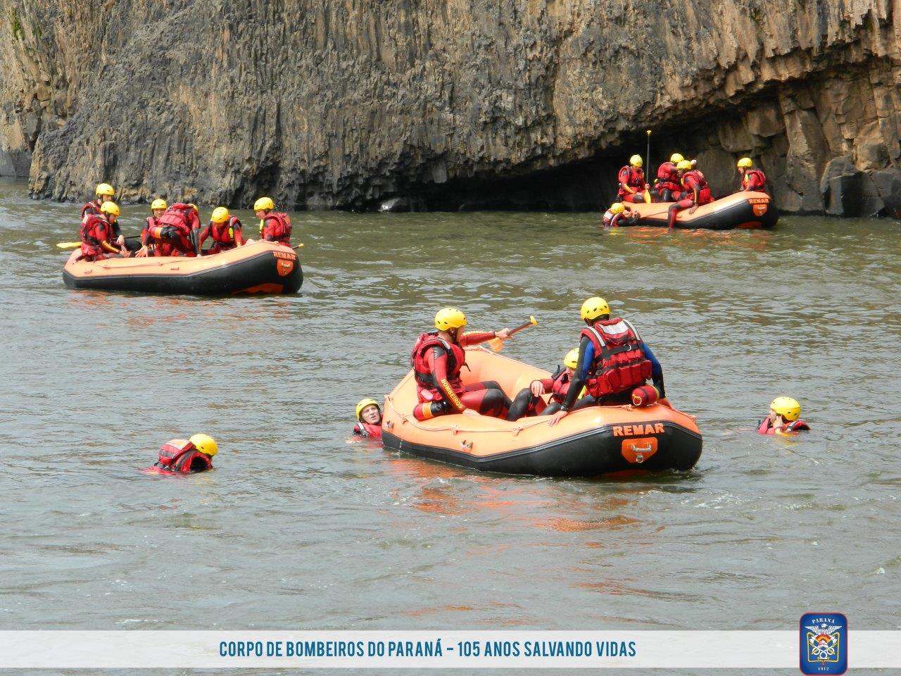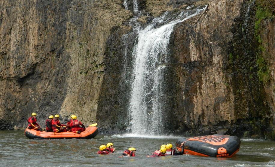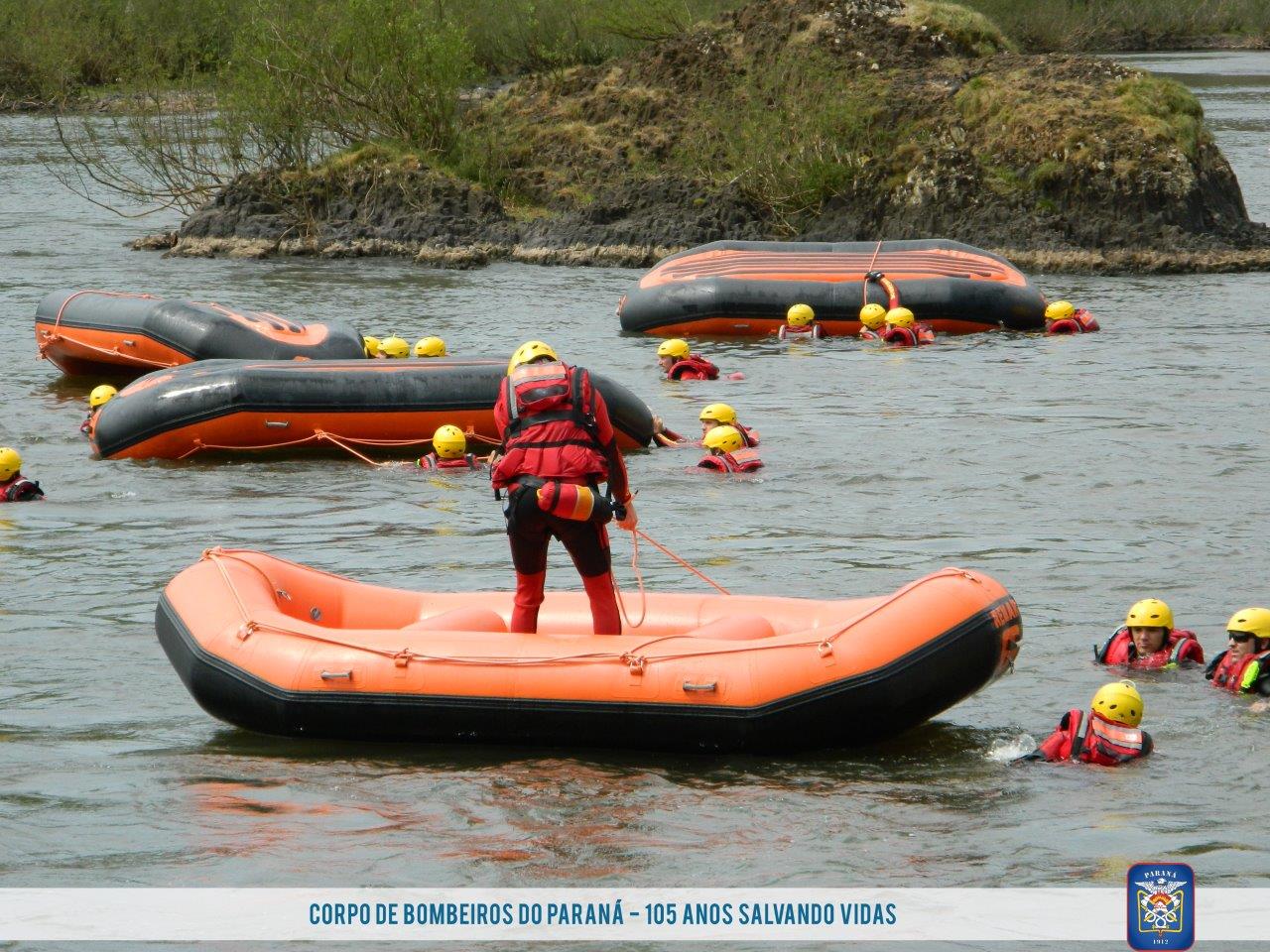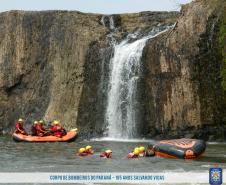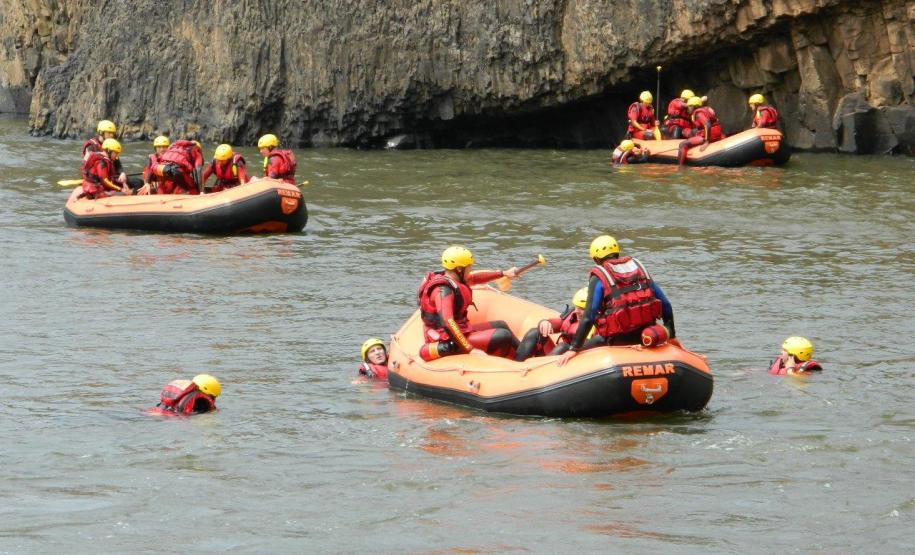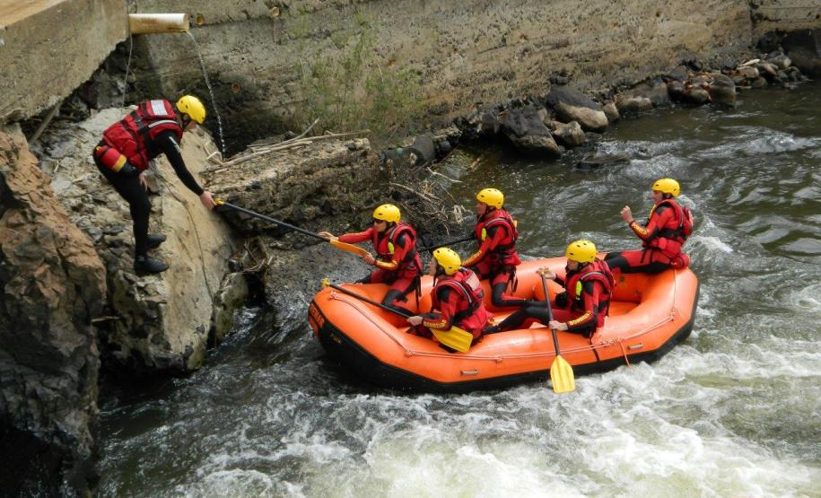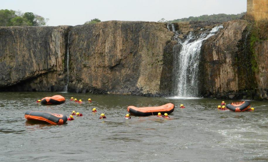 As águas do vertedouro da usina hidrelétrica Chopim I em Itapejara D'Oeste (PR) foram o local escolhido para que os bombeiros realizassem os exercícios, operação e manobras com embarcação. Ao final das atividades as equipes percorrem de bote inflável 11 Km ao longo do Rio Chopin, colocando em práticas as técnicas para vencer corredeiras, quedas d'água e simulando as técnicas de salvamento.