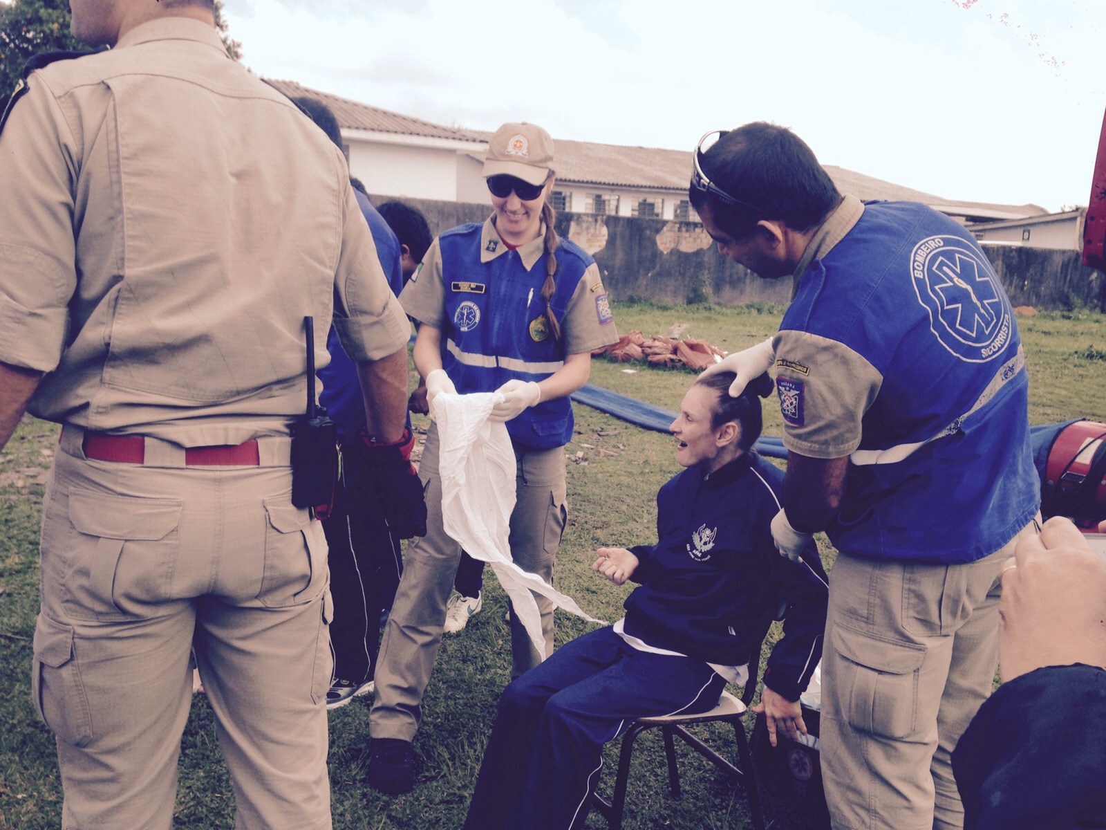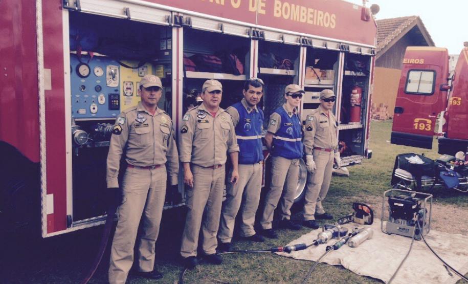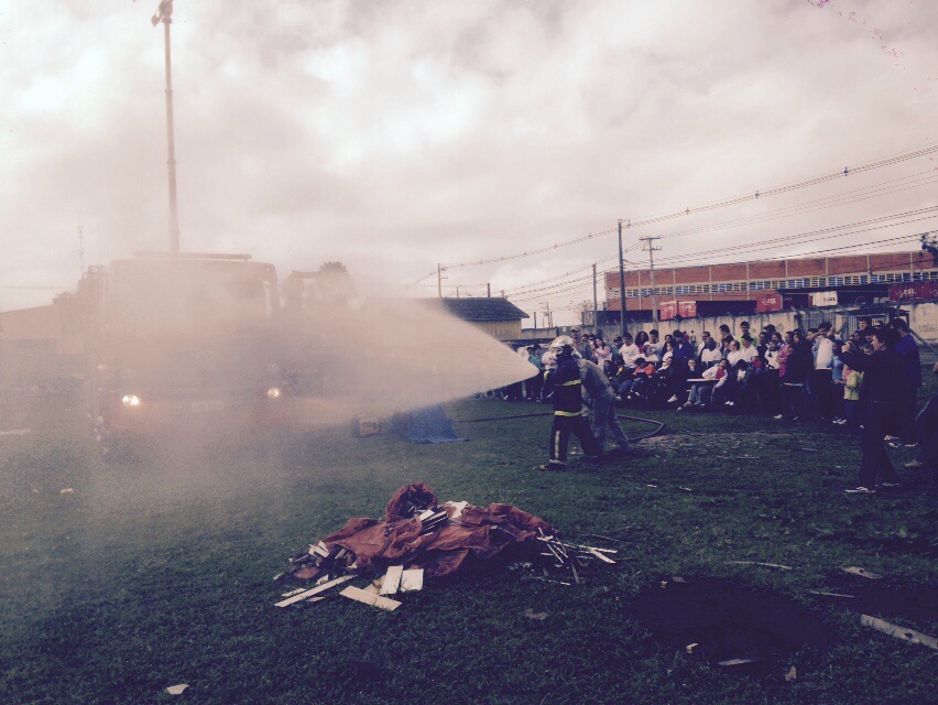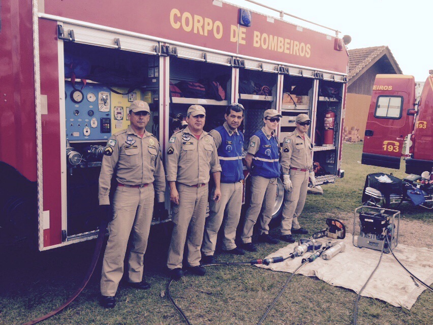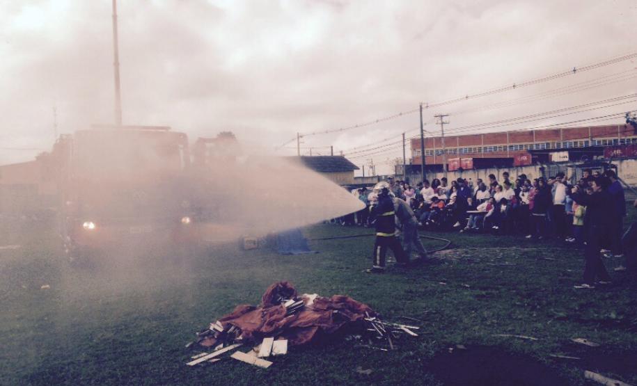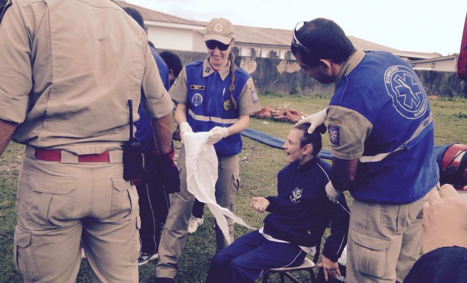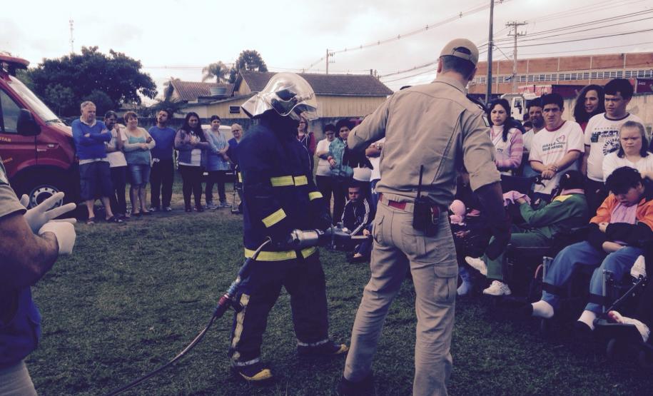 Durante o teste de prontidão houve a demonstração dos equipamentos das viaturas operacionais de combate a incêndio e da ambulância, que na oportunidade puderam os alunos realizar o manuseio de alguns desses materiais.