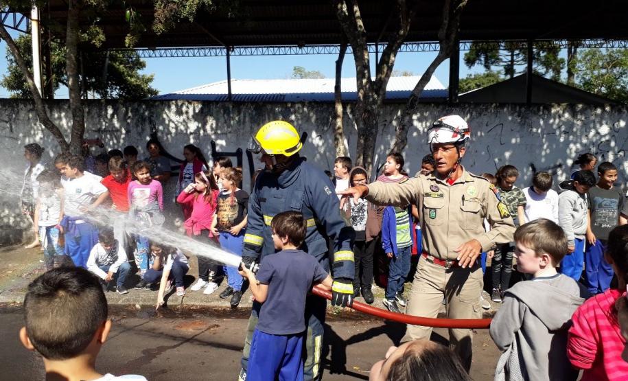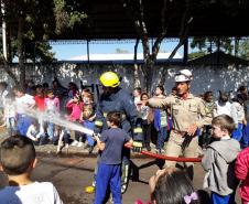 Teste de equipamentos do Corpo de Bombeiros empolga crianças em Escola Municipal de São José dos Pinhais 23/04/2018 - 16:00