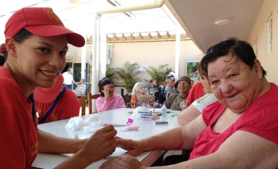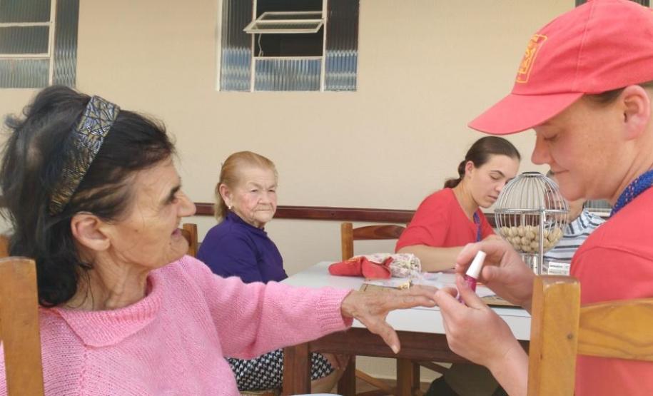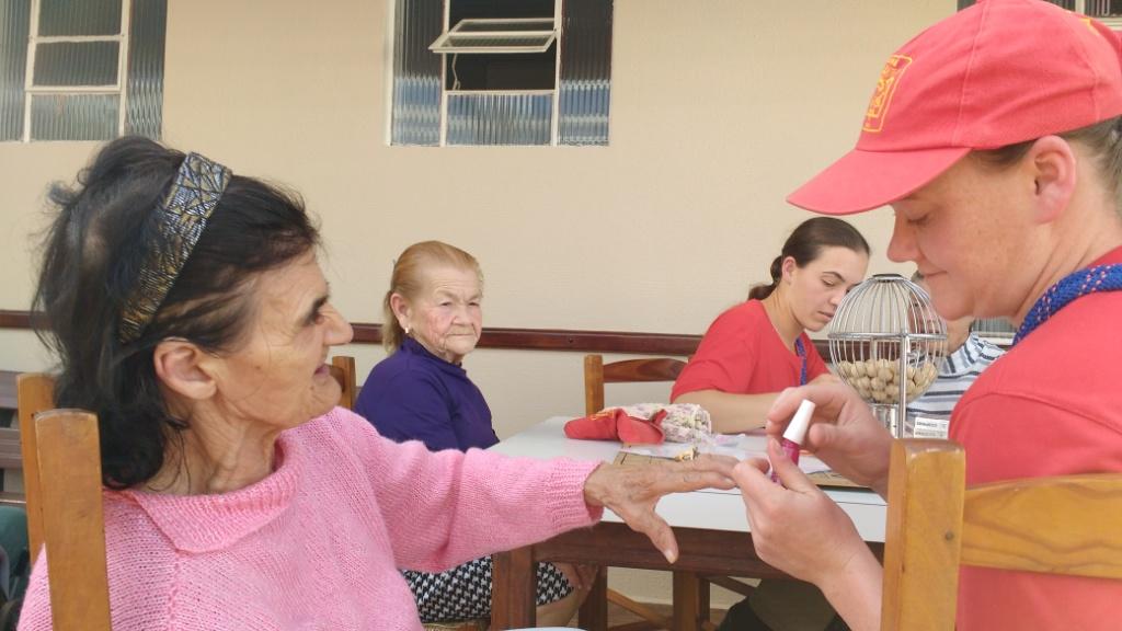 O Lar de Idosos recebeu como doação produtos de higiene pessoal e materiais de limpeza. Também foram realizados jogos de mesa, bingo, música. As senhoras do lar tiveram suas unhas pintadas e receberam várias bijuterias, já os senhores tiveram a barba feita.